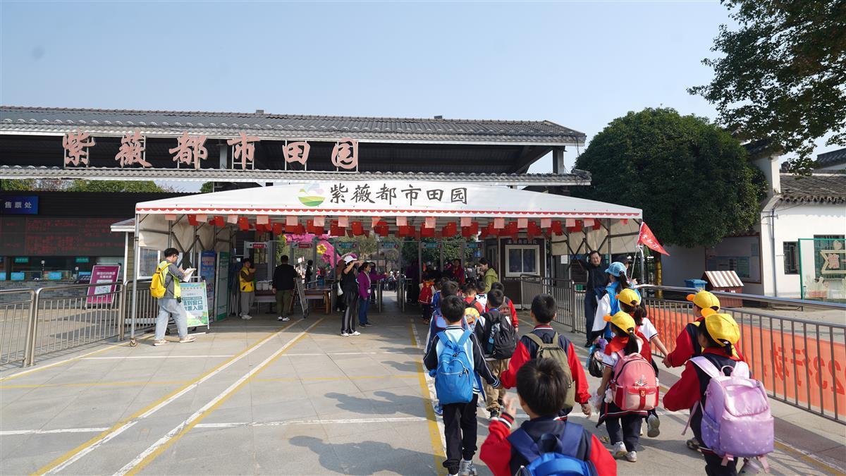 在紫薇都市田园,这片休闲园区中的金色稻田,称得上是综合体里“紫薇生态稻田循环种养项目”的缩小版。在与之相距不远的广袤大地上,千余亩的生态稻田正在忙着收割今年的最后一波稻谷。