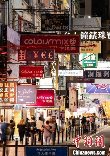 图为港岛繁华商业街区铜锣湾的各式户外招牌。 中新网记者 侯宇 摄