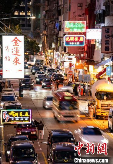 图为九龙半岛旺角附近的各式户外招牌。 中新网记者 侯宇 摄