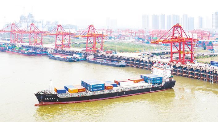 11月15日,满载货物的“华航汉亚6”轮从武汉阳逻港启航。(湖北日报全媒记者 朱熙勇 任勇 通讯员 缪晶 胡艳 摄)