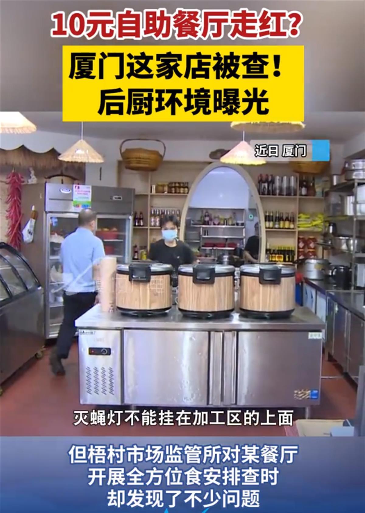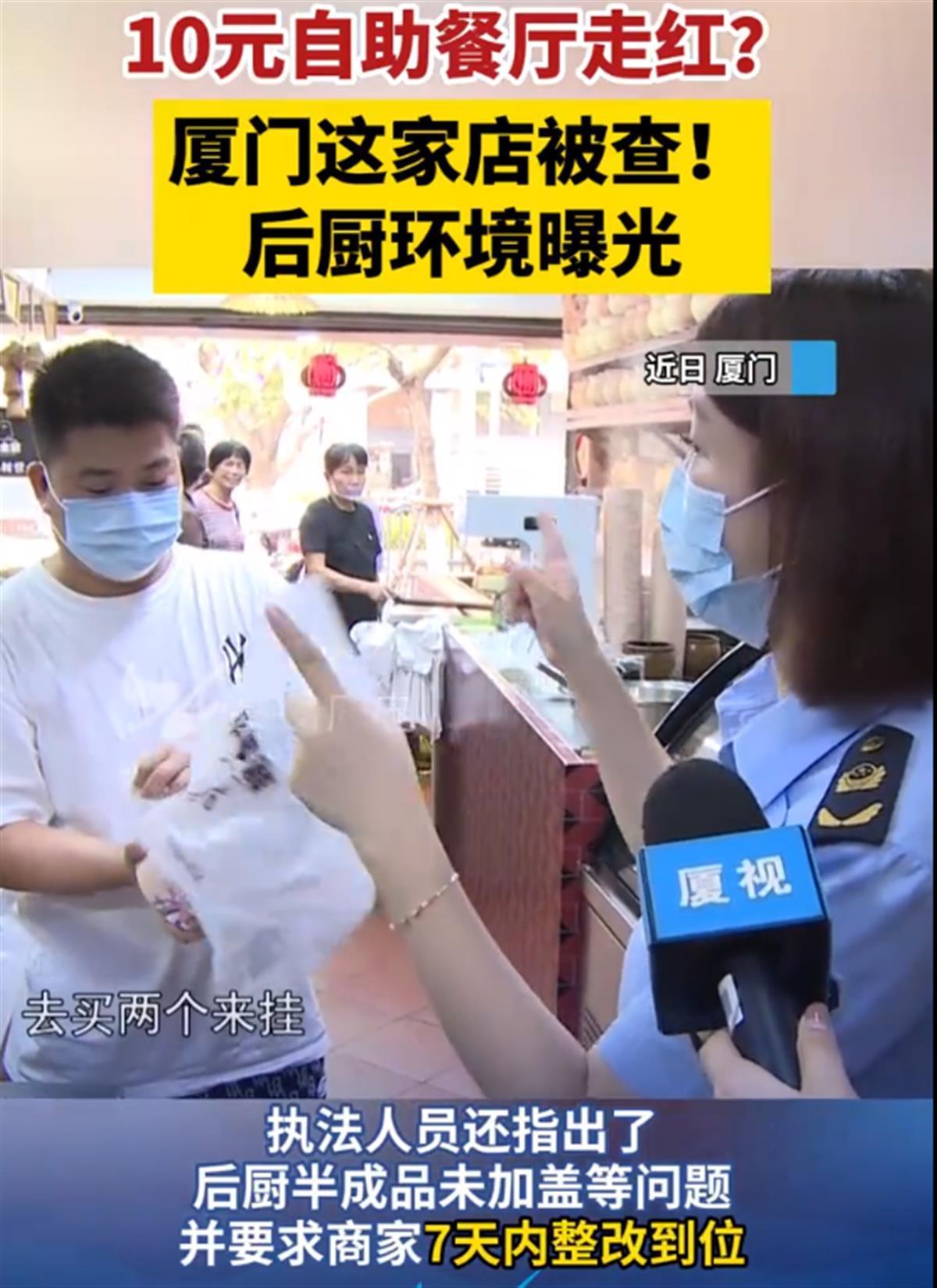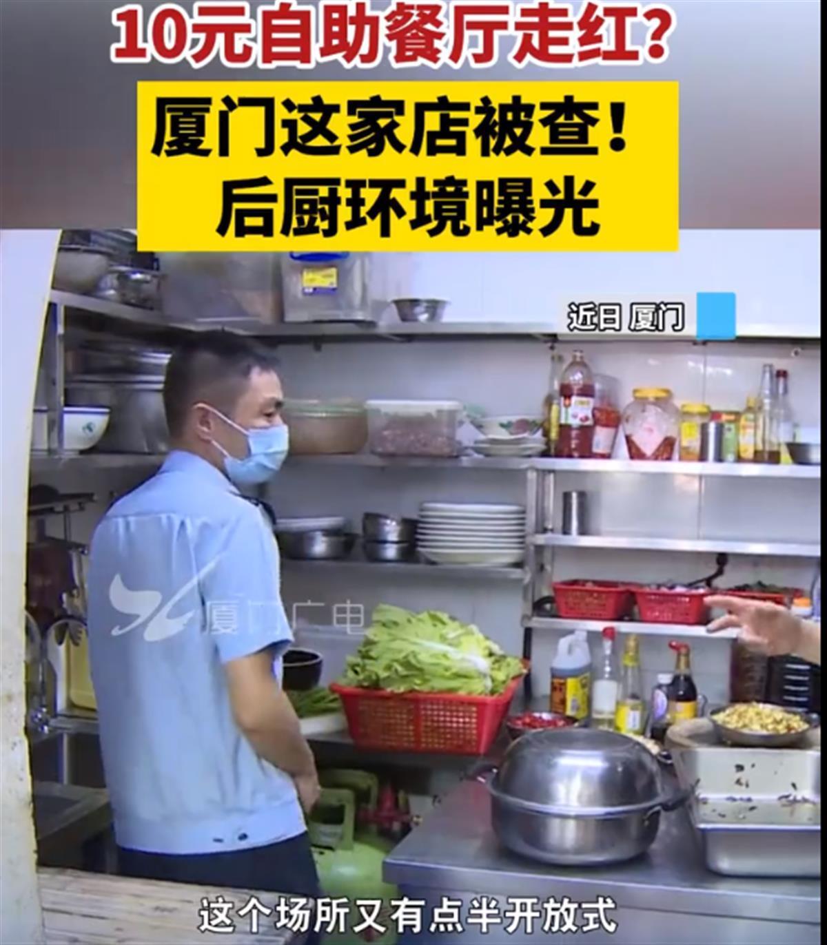 执法人员检查10元自助餐厅(来源:厦门广电)
