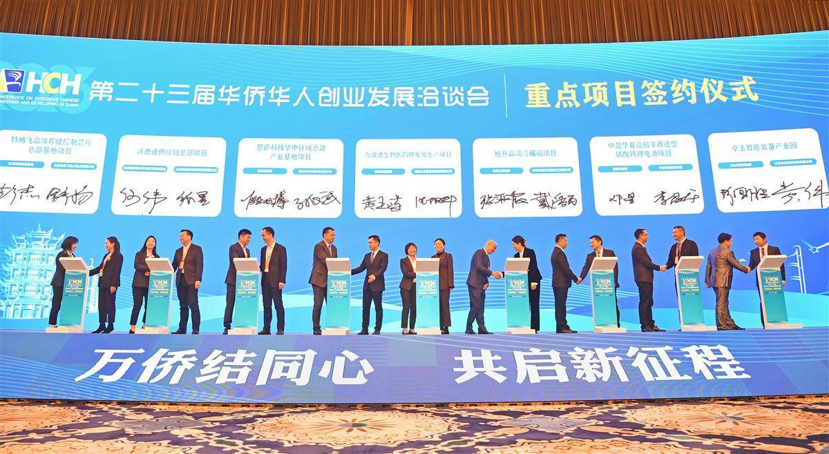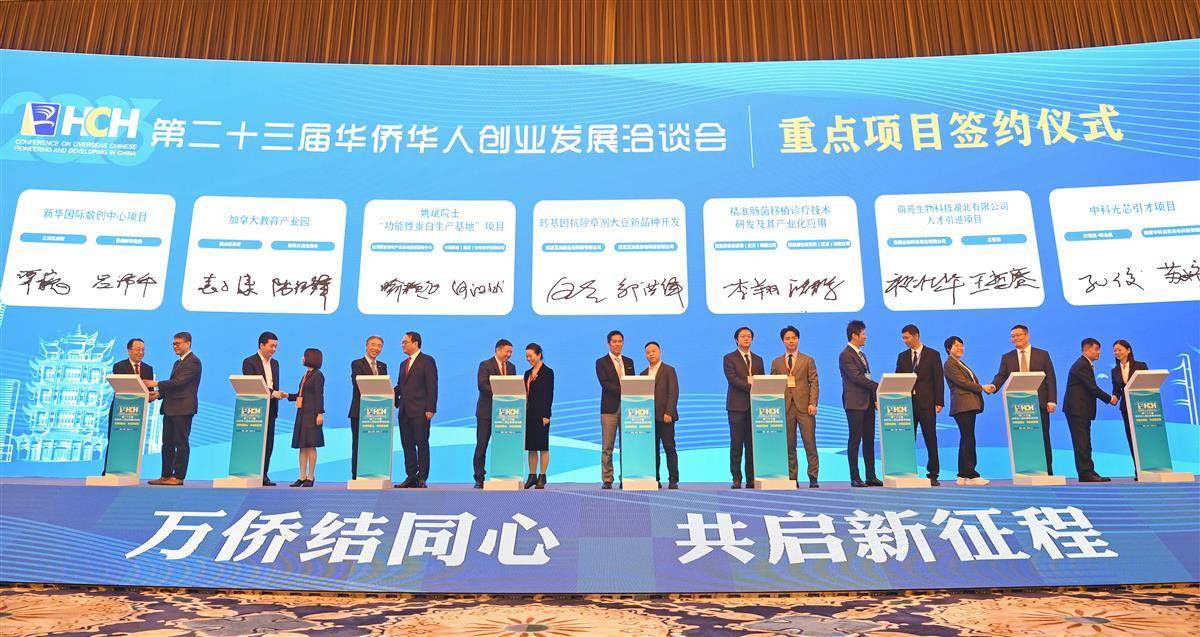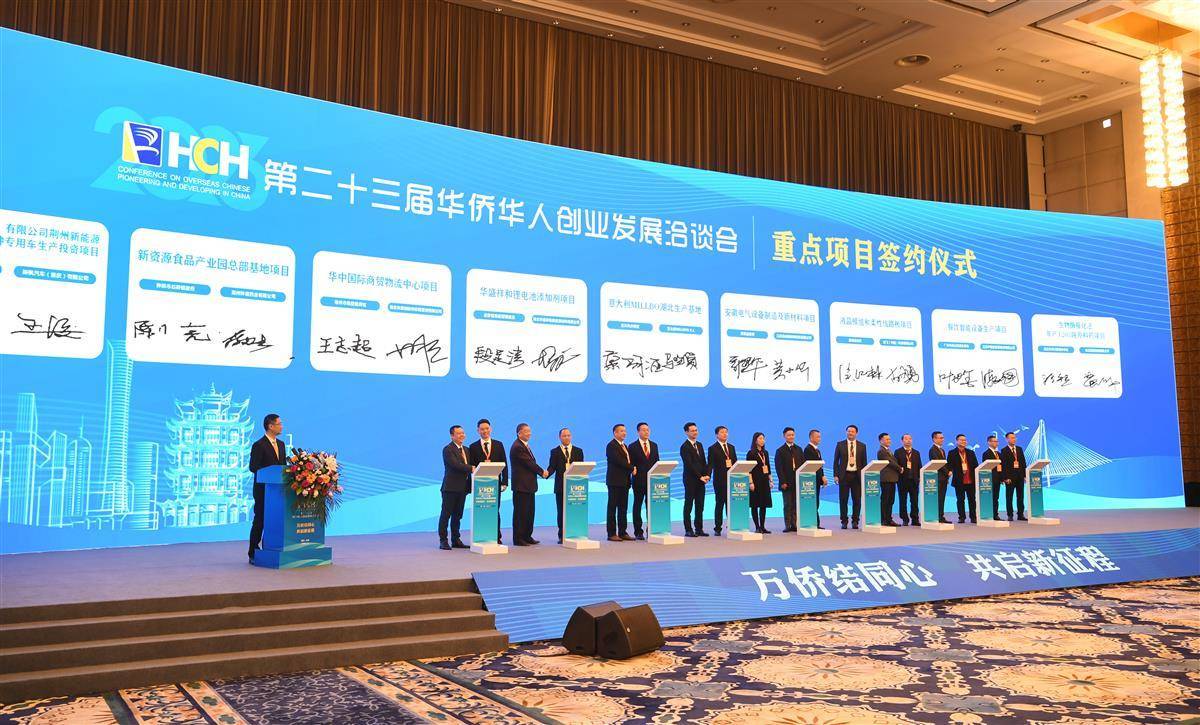 11月16日,第二十三届华侨华人创业发展洽谈会在武汉开幕。本届华创会以“万侨结同心,共启新征程”为主题,其间共举办15场专场活动,海内外嘉宾在此共叙情谊,共谋合作,共赢未来。
