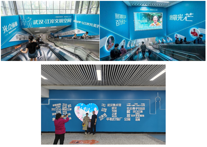 轨道交通快速发展的今天,地铁是都市人日常出行的主要交通工具,地铁空间则是城市中人口密度最大、流动性最强及利用率最高的公共空间之一,成为连接城市与公众的纽带。武汉市江岸区在武汉三阳路地铁站7号线和1号线的换乘区打造全市首个区级文明空间——“江岸之光”文明空间,在地铁内打造沉浸式的“蓝色文明海洋”,用漫画形式展现身边榜样的成长故事、用扫码参与志愿服务的方式凝聚文明力量。与此同时,以“我♥江岸”为主题,将江岸文旅元素巧妙融入,让每位打卡的乘客成为主动推介江岸的“自来水”。经人民网、新华网、央广网、中新网等央级媒体的推介“种草”,“江岸之光”文明空间的热度持续攀升,开放后一周时间相关话题阅读量超1200万。用一束束平凡而独特的光芒,唤醒更多人情感共鸣,引领文明新风尚。