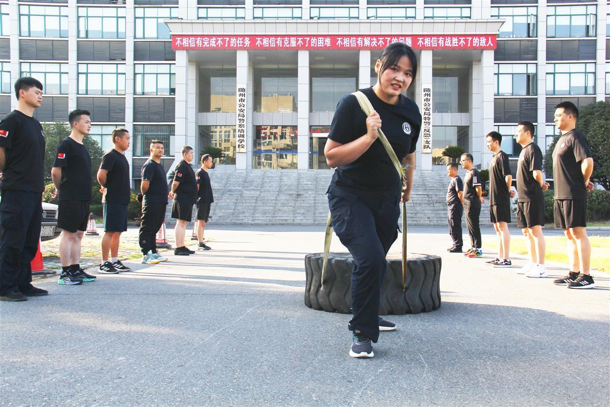 “开始!”随着裁判员手中计时秒表“咔嚓”一响,选手张建超连续翻转160公斤轮胎40个,最终勇夺单项成绩第一名。近日,湖北省随州市公安局特警支队举行警事技能大比武。