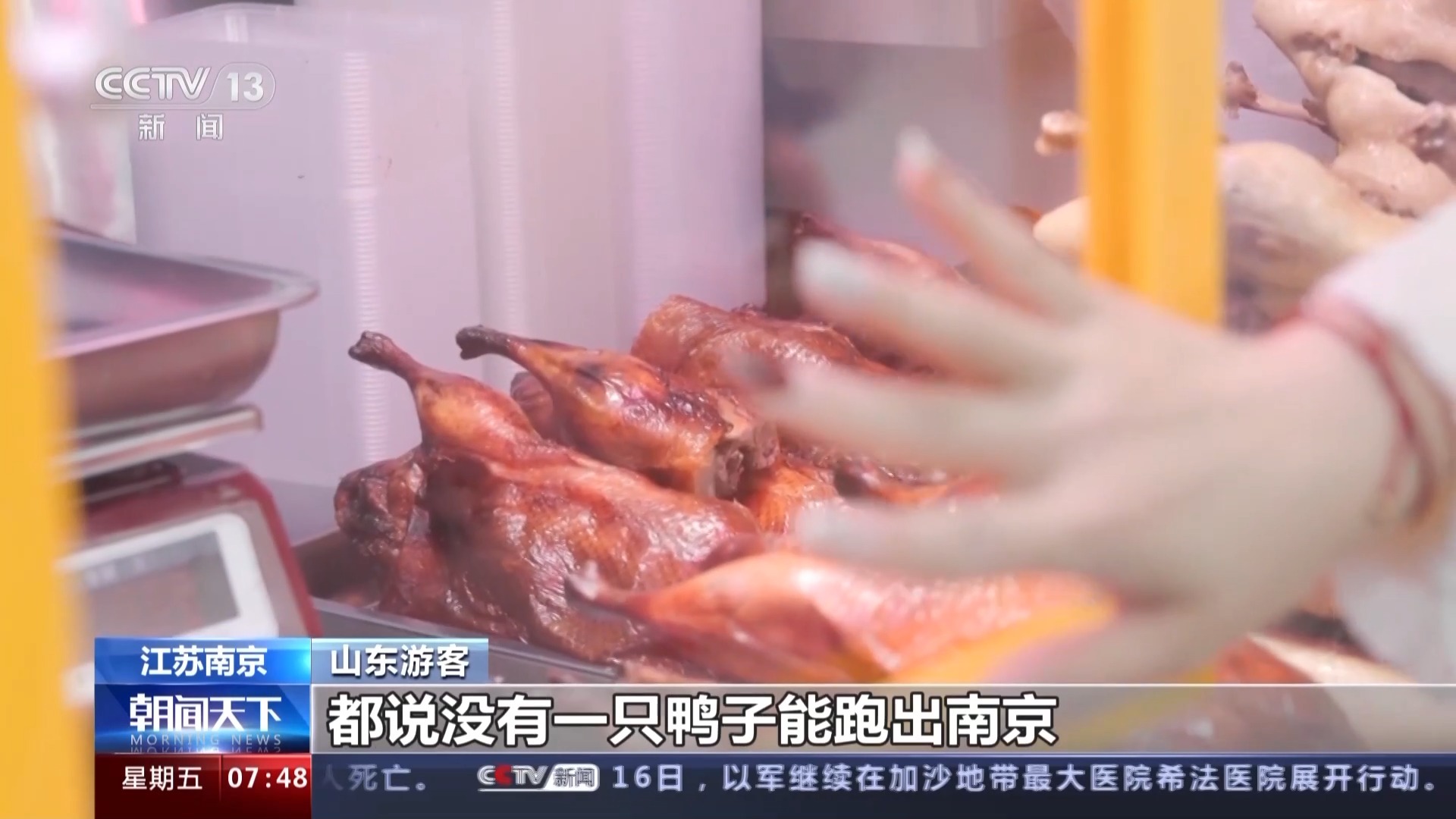 山东游客:因为我昨天刚来吃了,临走前给朋友带。不是说南京没有一只鸭子能跑出南京,所以说要带一个回去。