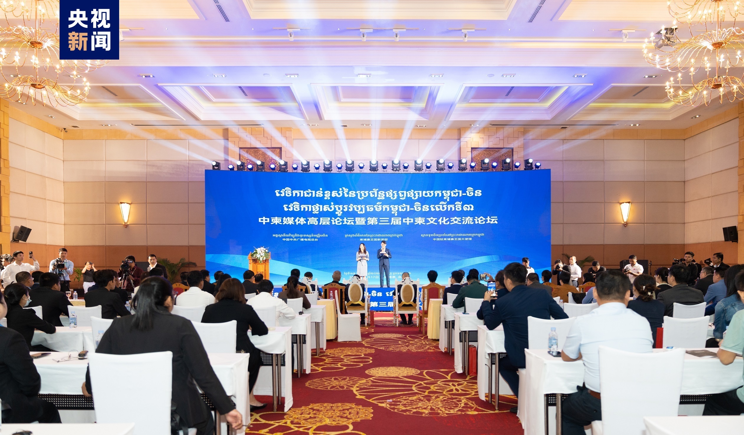 11月17日,由中国中央广播电视总台、柬埔寨新闻部和中国驻柬埔寨大使馆联合主办的中柬媒体高层论坛暨第三届中柬文化交流论坛在金边举行。柬埔寨新闻部大臣奈帕德拉、中央广播电视总台副台长胡劲军、中国驻柬埔寨大使王文天出席论坛并致辞。