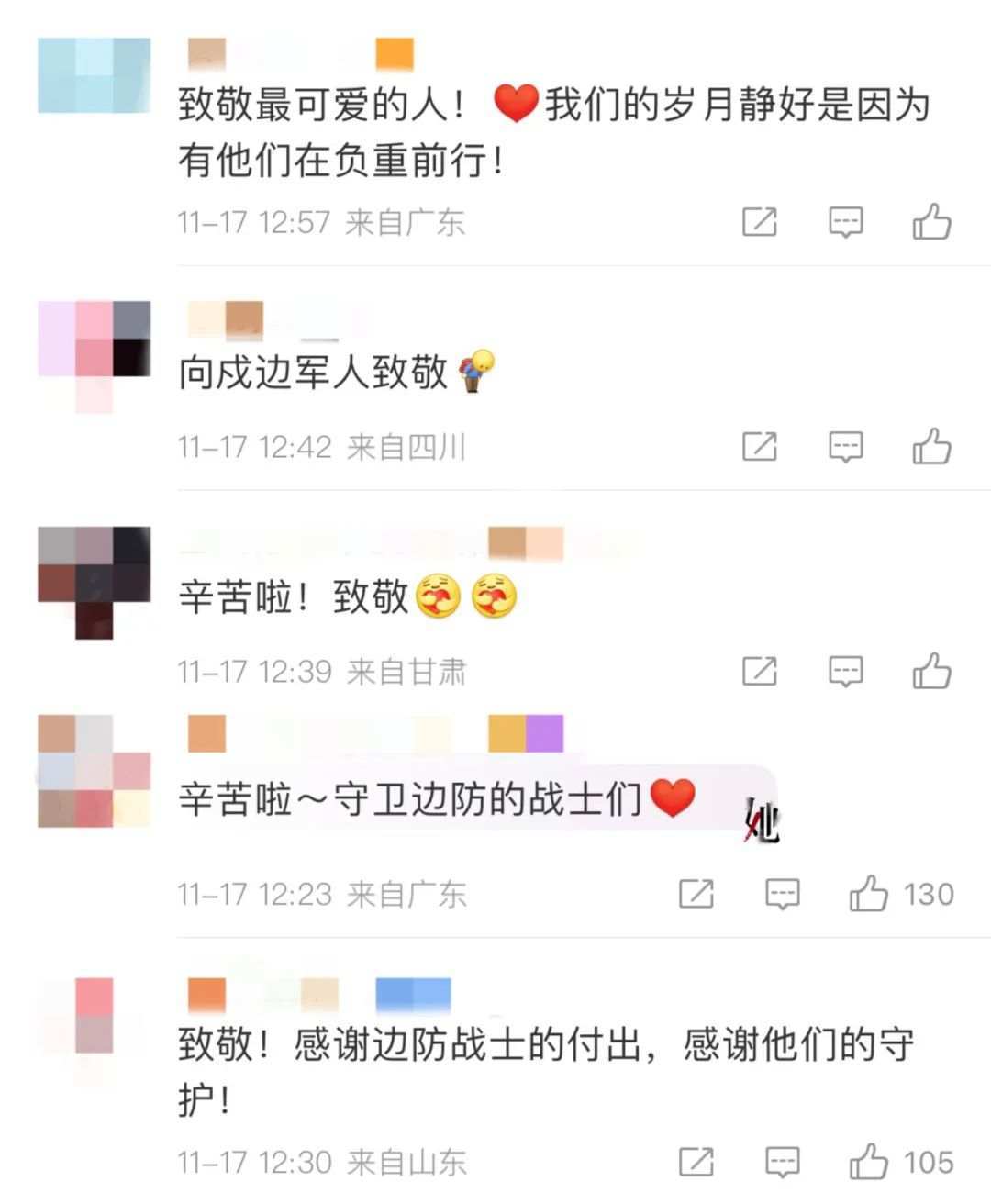 “感谢边防官兵的守护”