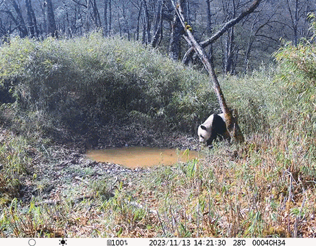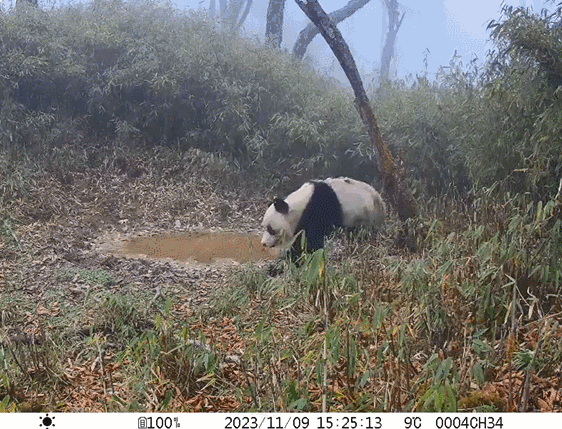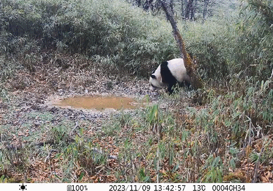 大熊猫来到同一点位喝水