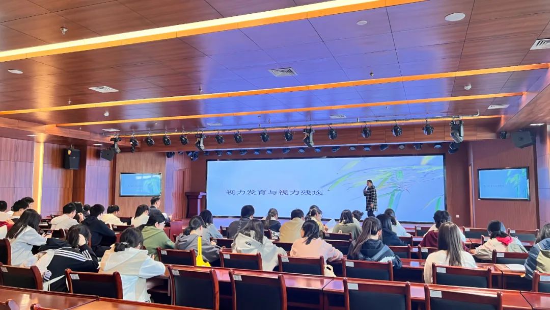 近日,华中师范大学融合教育学院特殊教育系主任徐添喜带领该系40余名同学赴省残联辅具中心交流学习,省残联辅具中心视障服务部负责人田文翔为全体师生上了一堂《视力发育与视力残疾》课。