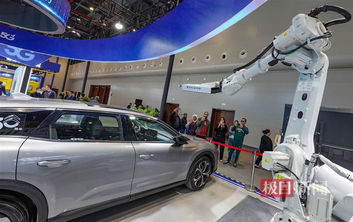 在中国电信展台,机械臂正在检测整车漆面缺陷