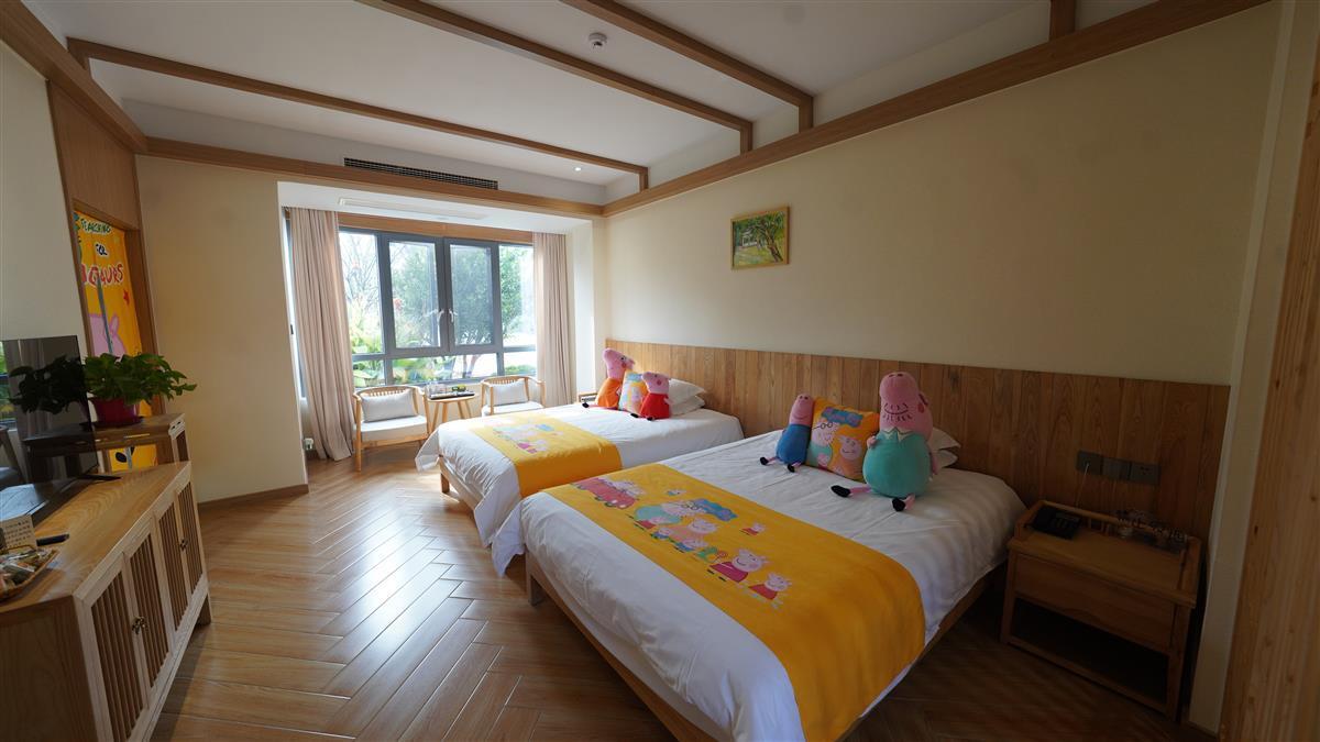 穿过花草丛林,来到靠山小镇的民宿房间,原木家具“搭档”智能家居,让人感受自然与科技融合的轻松惬意;