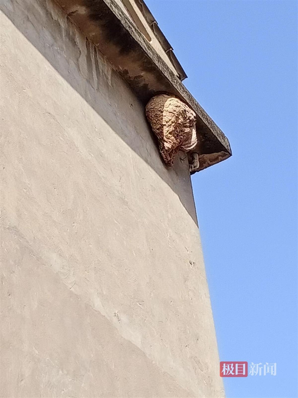 盘塘社区田凹小组周本生家三层楼房上水泥屋檐顶下住着一窝毒蜂。从去年8月起,蜂窝有篦丝箩那么大,夏天毒蜂满天飞,垸内男女老少路过此地都提心吊胆,生怕被毒蜂咬。