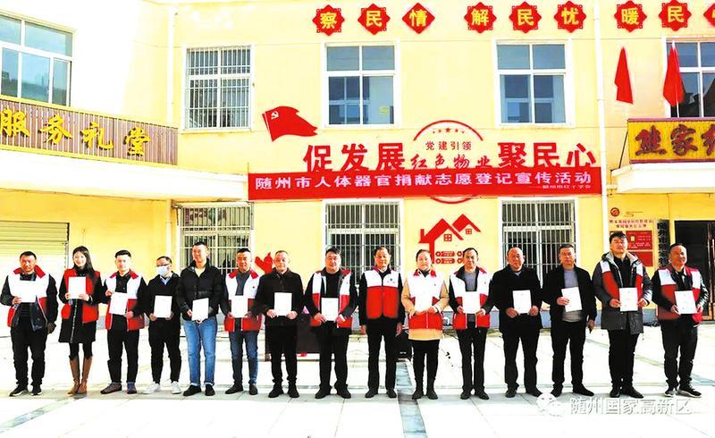 11月16日,随州高新区举行首场人体器官捐献志愿登记宣传活动。当日,熊家花园小区47名居民进行了人体器官捐献登记。“器官捐献是一次富有诗意的人生告别,也是一种特殊的生命延续。是一种大爱。”随州高新区党工委委员、管委会副主任史磊蕾表示,“47名社区居民主动进行人体器官捐献登记,既弘扬了红十字精神,又展示了新时代居民们良好的社会责任意识,具有引领作用!” (随州日报特约记者 钟克波 通讯员 郭海洲摄)