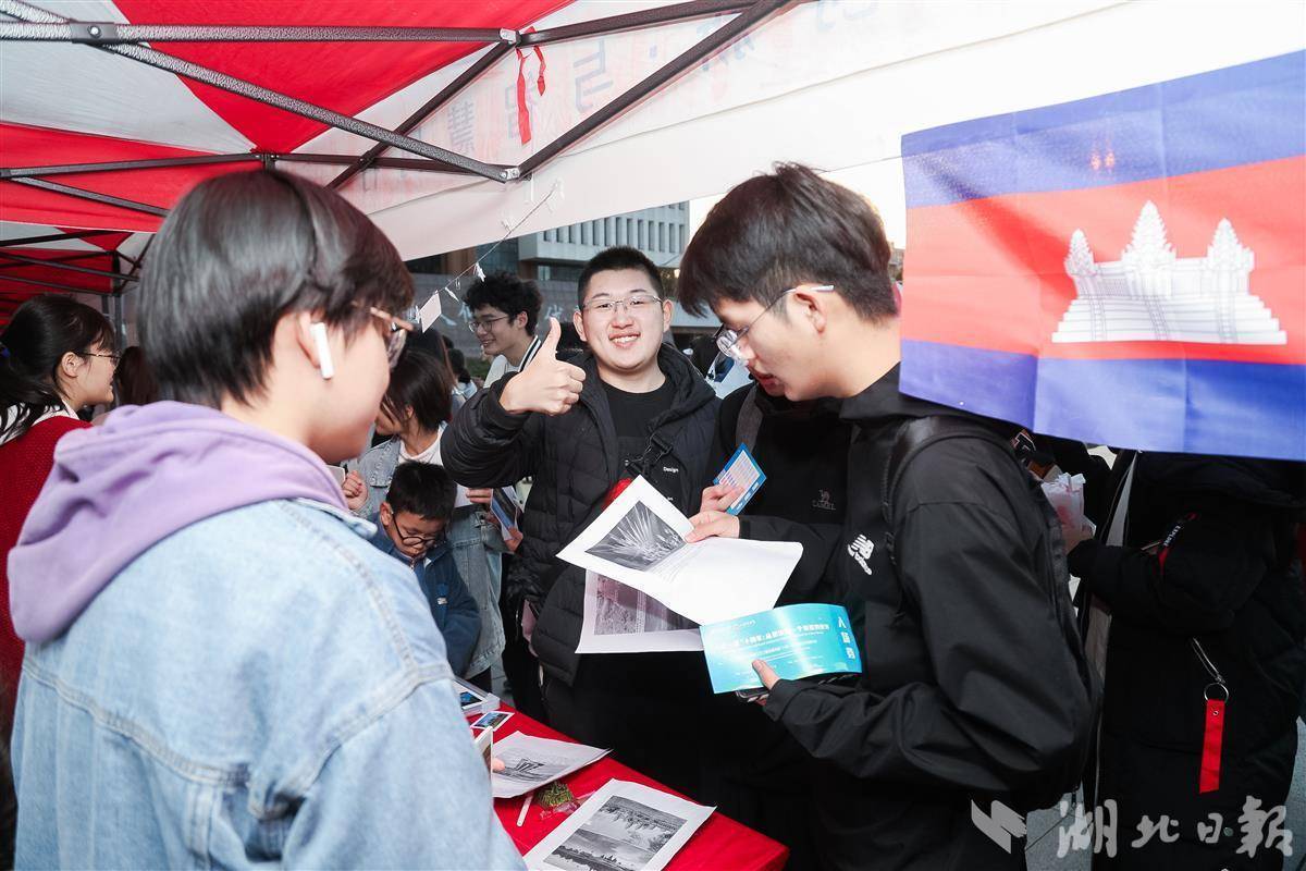 湖北日报讯(记者文俊、通讯员张璐)11月19日下午,武汉理工大学第二十二届外语节暨“一带一路”国际文化嘉年华在该校南湖校区博学广场揭开序幕。活动现场设置有“政策沟通”“设施联通”“贸易畅通”“资金融通”“民心相通”五个互动学习区和二十五个国家展区,集中体现了“一带一路”倡议十周年取得的丰硕成果。