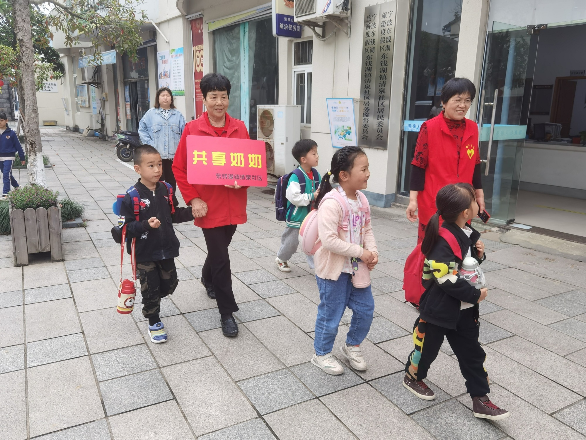 每一个上学日,在浙江省宁波市鄞州区东钱湖镇实验幼儿园和高钱小学的大门口,都会出现几位身穿红色马甲的老奶奶,高举接送牌接小朋友放学。他们被孩子们亲切地称为“共享奶奶”。奶奶们在4年多时间里共护送600余名孩童放学。