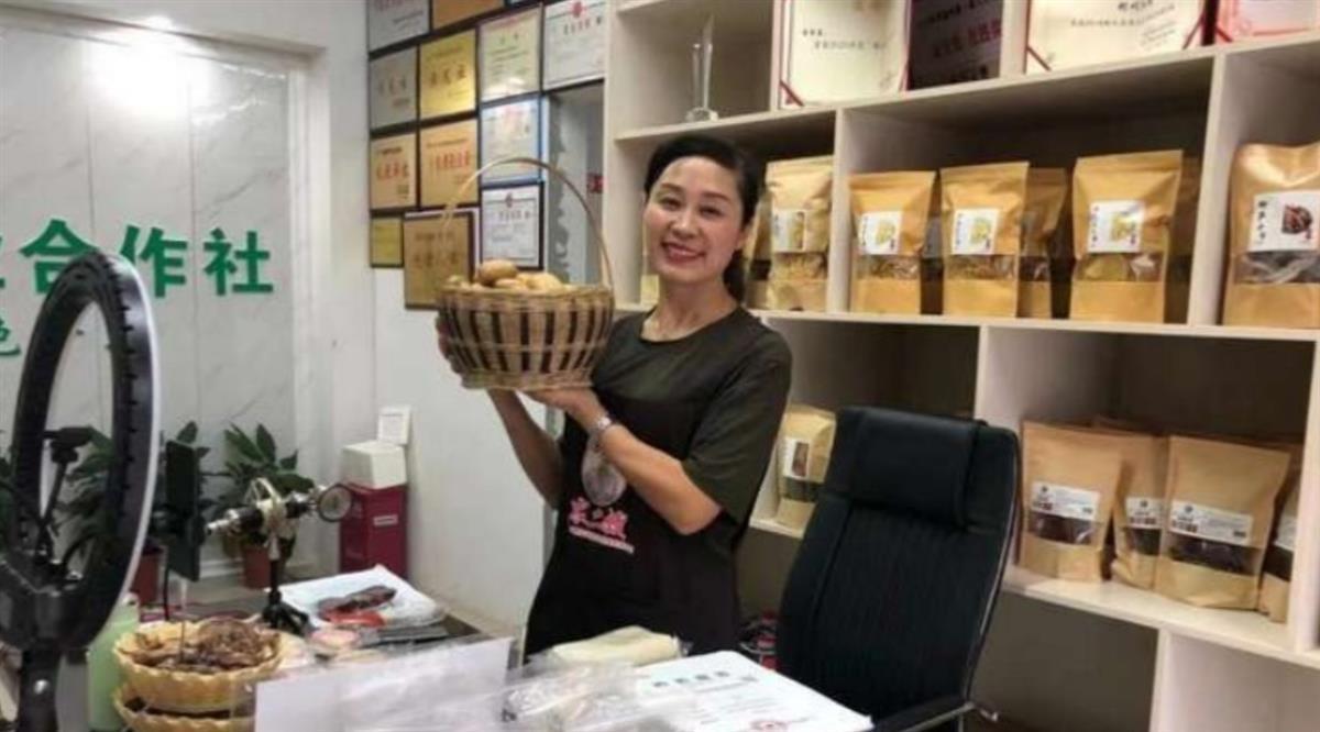 “农二嫂”余芙蓉正在直播销售农产品