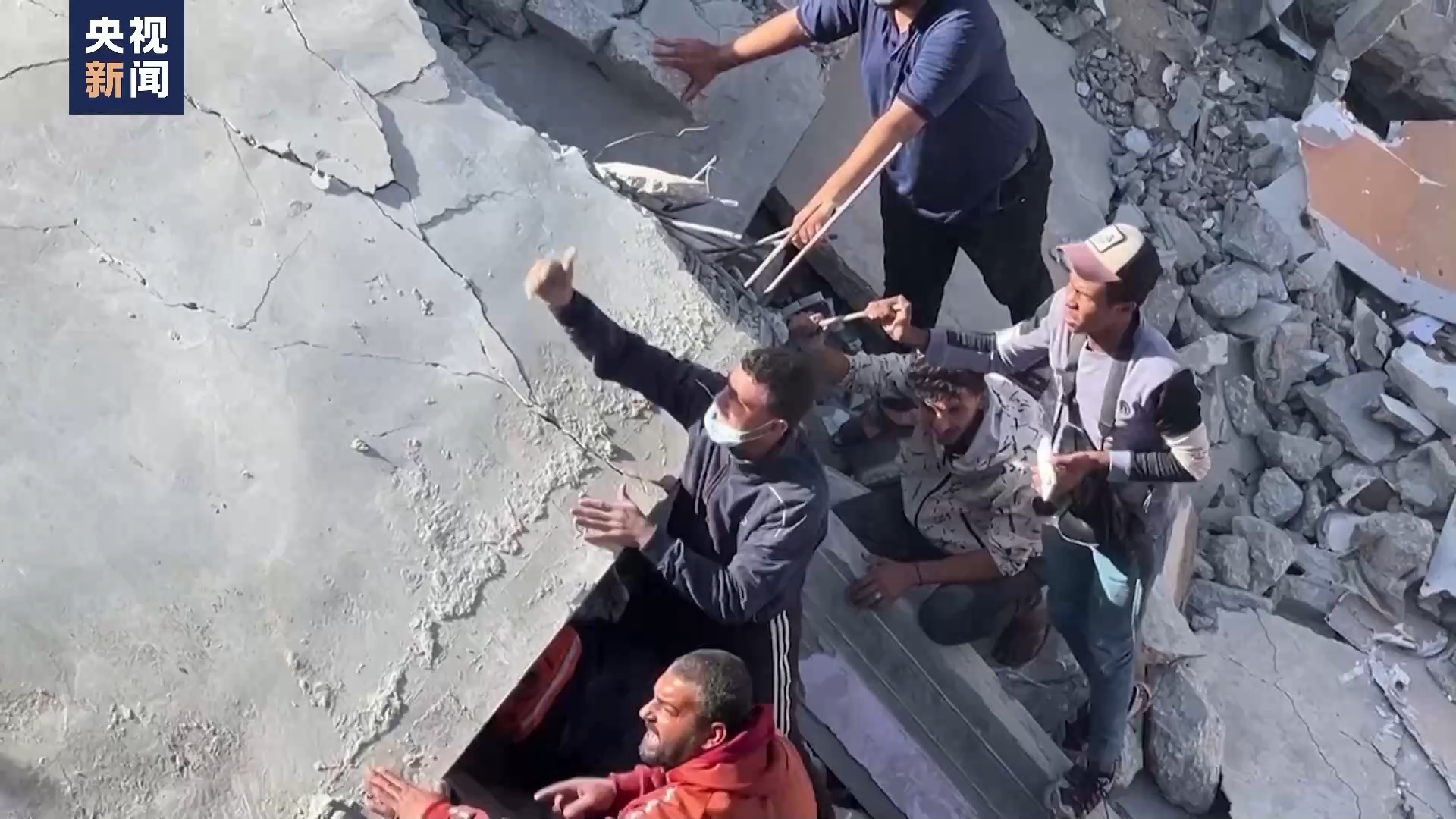 在拉法市,以军的轰炸几乎将这里的一个居民区夷为平地。救援人员和当地居民在废墟中挖掘,试图营救被困在废墟底下的人员。对于当地居民来说,他们虽然从空袭中幸存下来,但却失去了他们的家园。