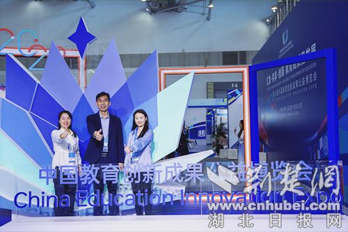 襄阳市人民路小学教育集团校长李远宏及团队在博览会现场。通讯员 供图
