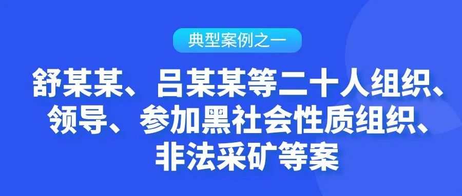 湖北省黄梅县人民法院一审判决,对被告人舒某某以组织、领导黑社会性质组织罪、非法采矿罪、敲诈勒索罪、强迫交易罪、妨害公务罪、寻衅滋事罪、非法转让土地使用权罪、故意毁坏财物罪、开设赌场罪数罪并罚,决定执行有期徒刑二十一年,剥夺政治权利五年,并处没收个人全部财产。对被告人吕某某以组织、领导黑社会性质组织罪、非法采矿罪、敲诈勒索罪数罪并罚,决定执行有期徒刑十六年,剥夺政治权利三年,并处没收个人全部财产。以犯参加黑社会性质组织罪等罪对其余18名被告人决定执行二年至十年六个月不等有期徒刑,并处没收个人全部财产或一定数额罚金。宣判后,部分被告人不服,提出上诉,湖北省黄冈市中级人民法院二审裁定,驳回上诉,维持原判。