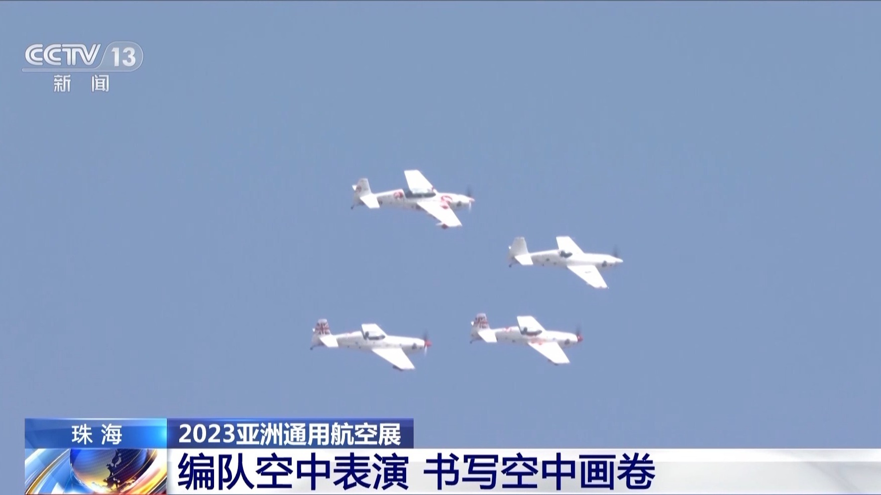 2023亚洲通用航空展11月23日至26日在广东珠海举办。山河飞行表演队的4机编队正在航展上空为观众带来精彩的飞行表演。