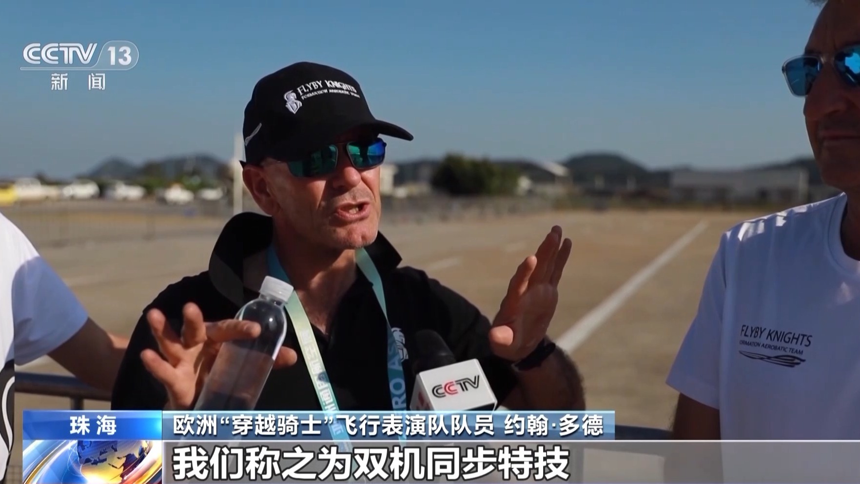 欧洲“穿越骑士”飞行表演队队员 约翰·多德:我的两个法国同事,他们表演了一些机动性强的动作,我们称之为双机同步特技。这是一次很好的经历。到目前为止我真的很喜欢它。