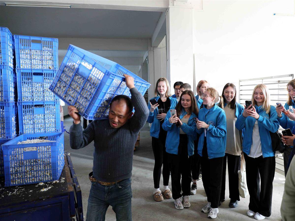在村里的直播中心——网红之家,通过观看纪录片,俄罗斯留学生了解到当地数字技术和电商平台推动农村经济的发展和转型的过程。