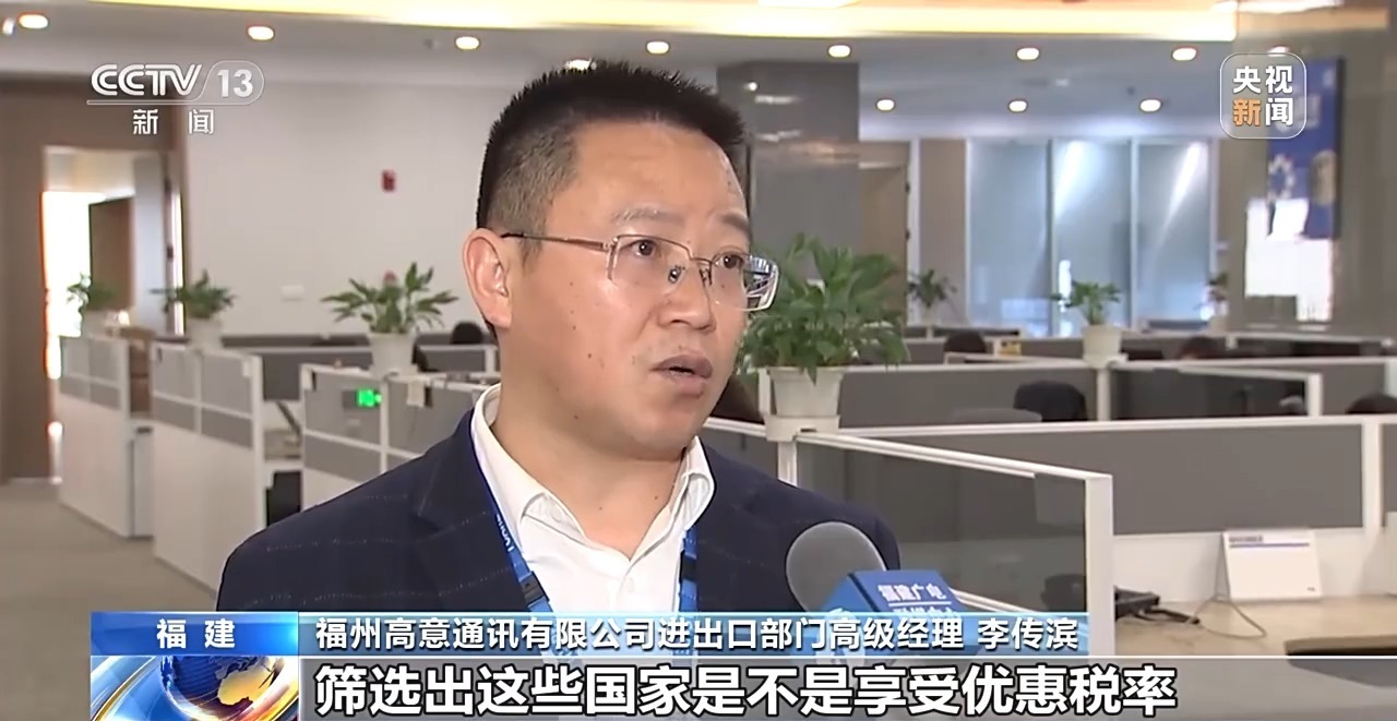 福州高意通讯有限公司进出口部门高级经理 李传滨:出口的时候,筛选出这些国家是不是享受优惠税率。从非RCEP国家采购,跟RCEP国家采购对比,初步估计可降低成本30万美金左右。