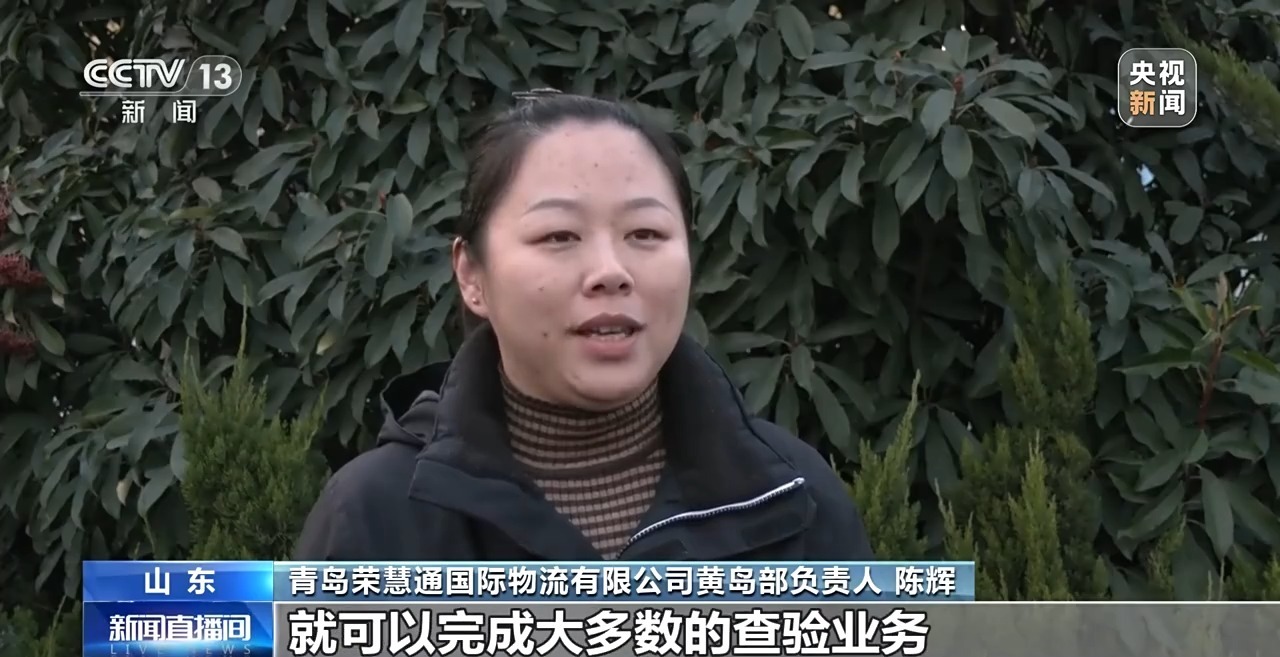 青岛荣慧通国际物流有限公司黄岛部负责人 陈辉:我们不需要跑到现场,直接在手机上操作一下就可以完成大多数的查验业务,查验效率提高了30%以上。