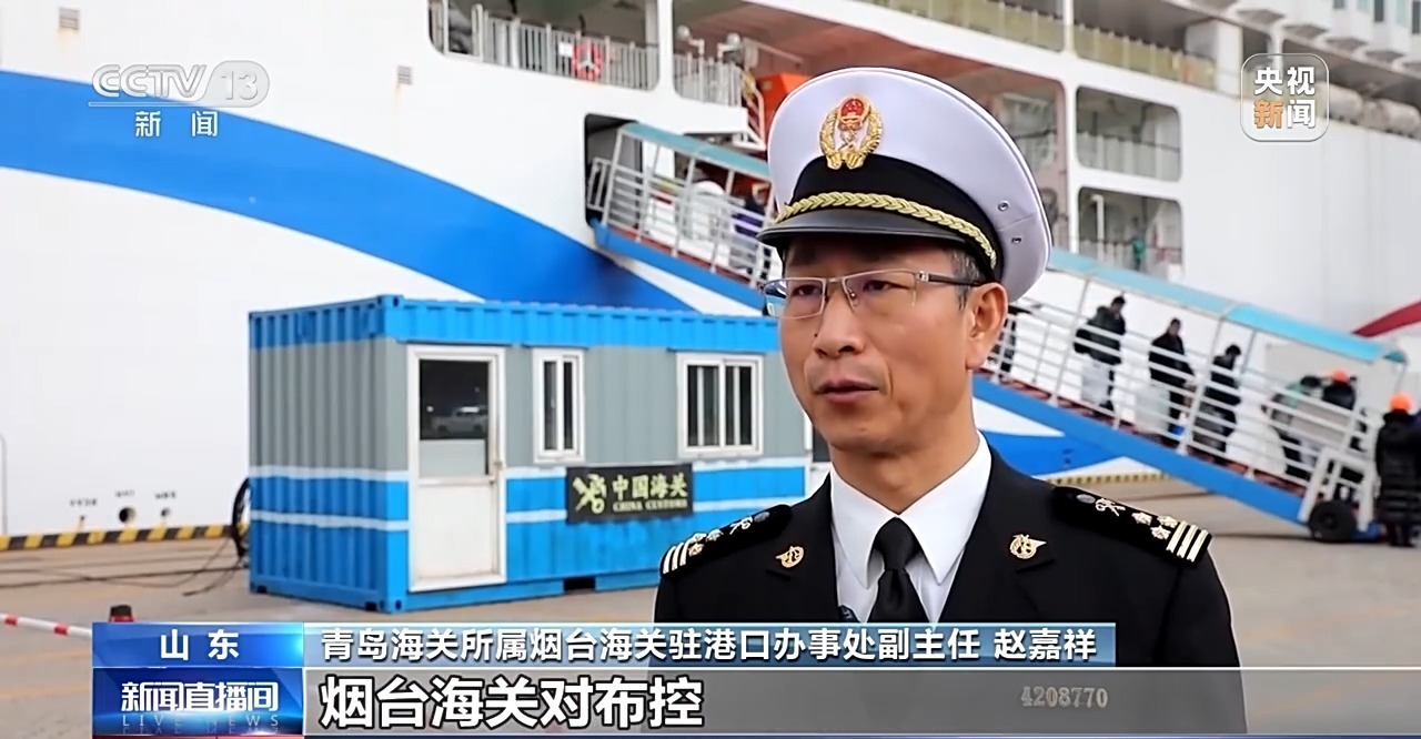 青岛海关所属烟台海关驻港口办事处副主任 赵嘉祥:自今年启用智慧电讯检疫模式以来,烟台海关对布控且符合开展条件的班轮实施智慧电讯检疫超100艘次,每一次可以为船舶在港作业时间节省近10%,约40分钟。
