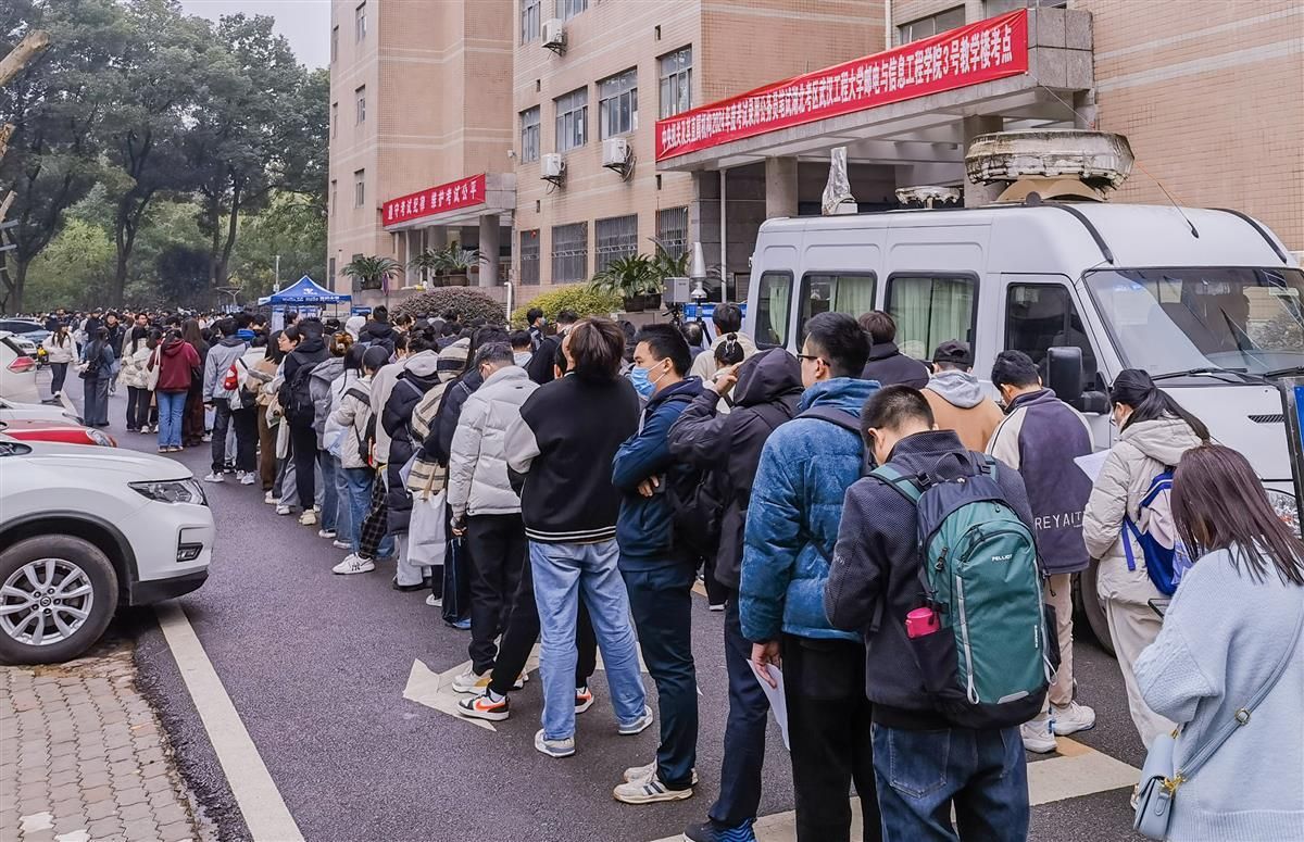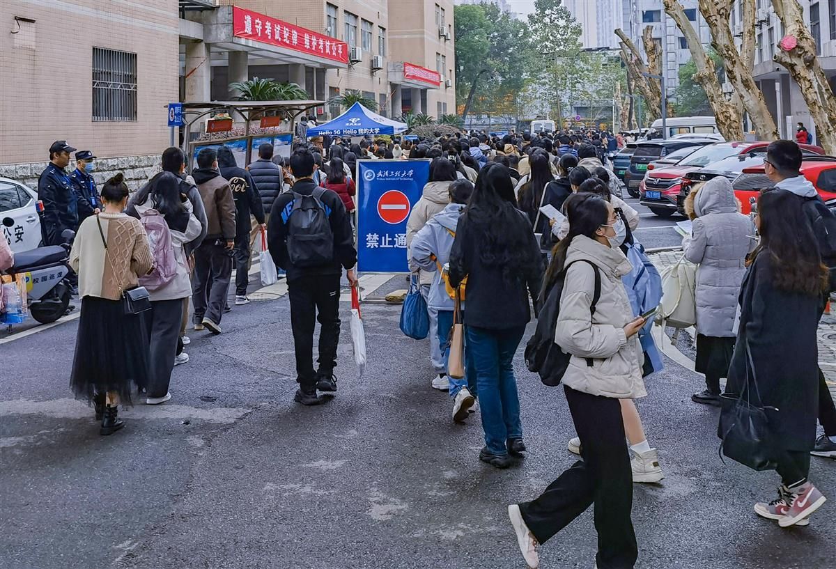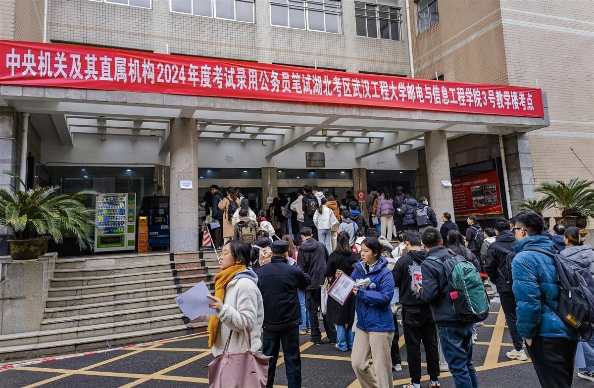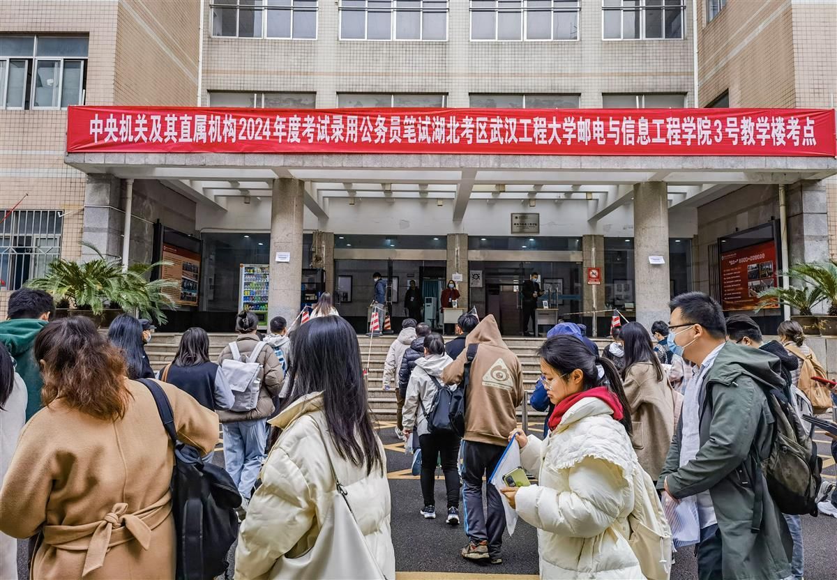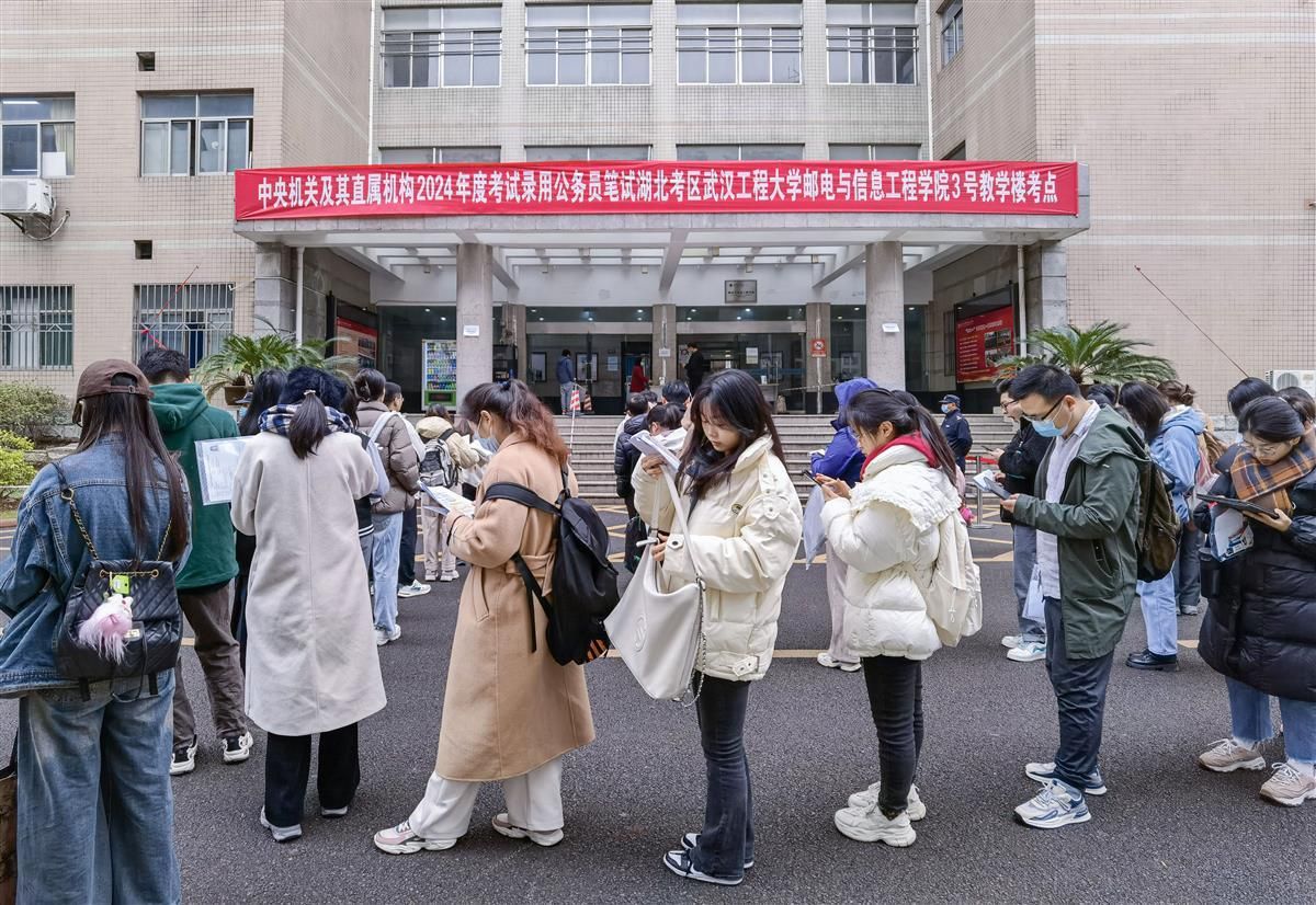11月26日上午,记者在2024国考武汉工程大学(鲁巷校区)考点看到,考生们有序排队进场。