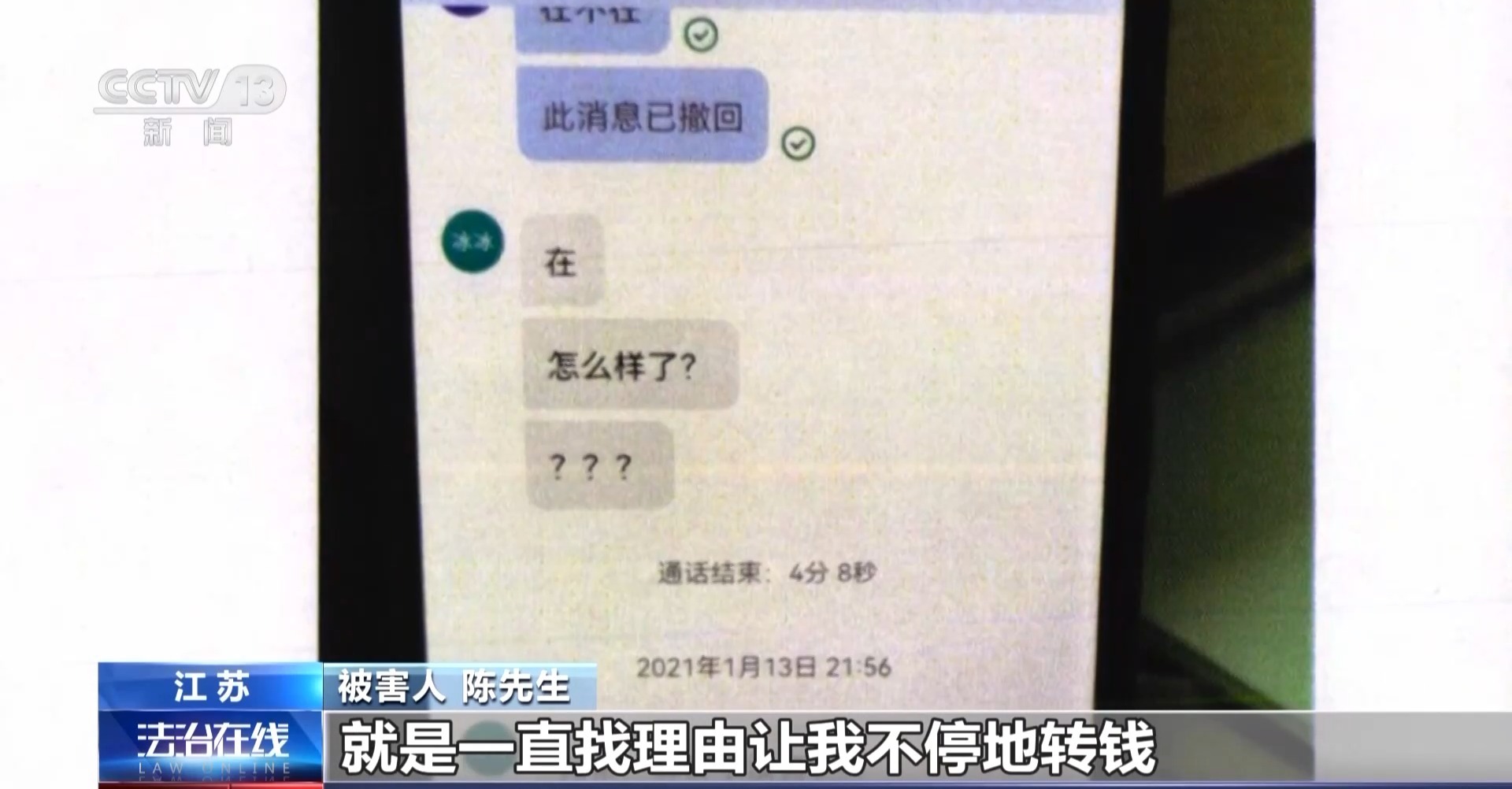 被害人 陈先生:对方又打了一个语音给我,声音还是个男的,就是一直找理由让我不停地转钱,我一共转了15笔钱将近30万块。