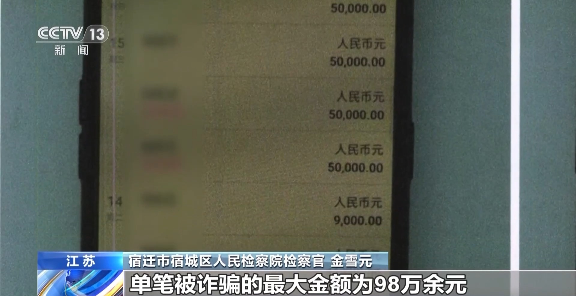 江苏省宿迁市宿城区人民检察院检察官 金雪元:该起案件中,单笔被诈骗的最大金额为98万余元,实施诈骗的过程中一般被害人充值一万元以下都是可以提现的。在进行大额充值,当被害人想要进行提现时系统会显示违规操作需要缴纳一定数额的保释金。