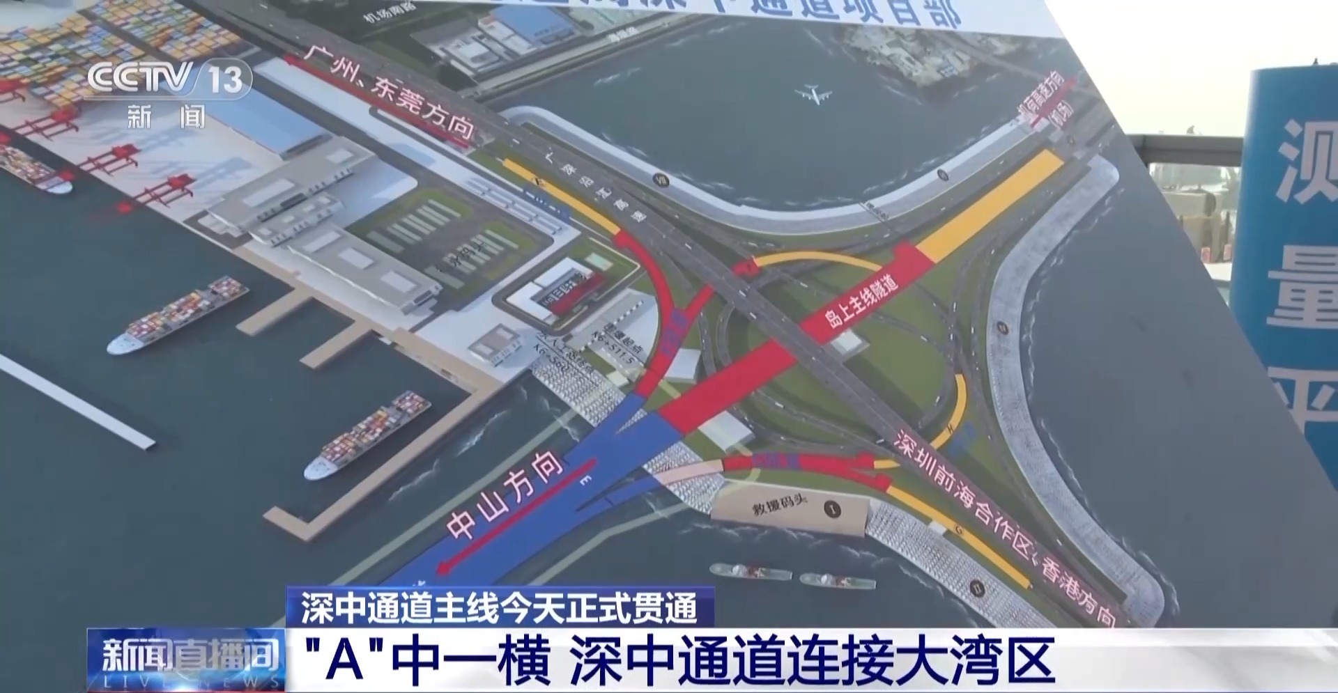 深中通道主线全线贯通 “A”中一横连接大湾区