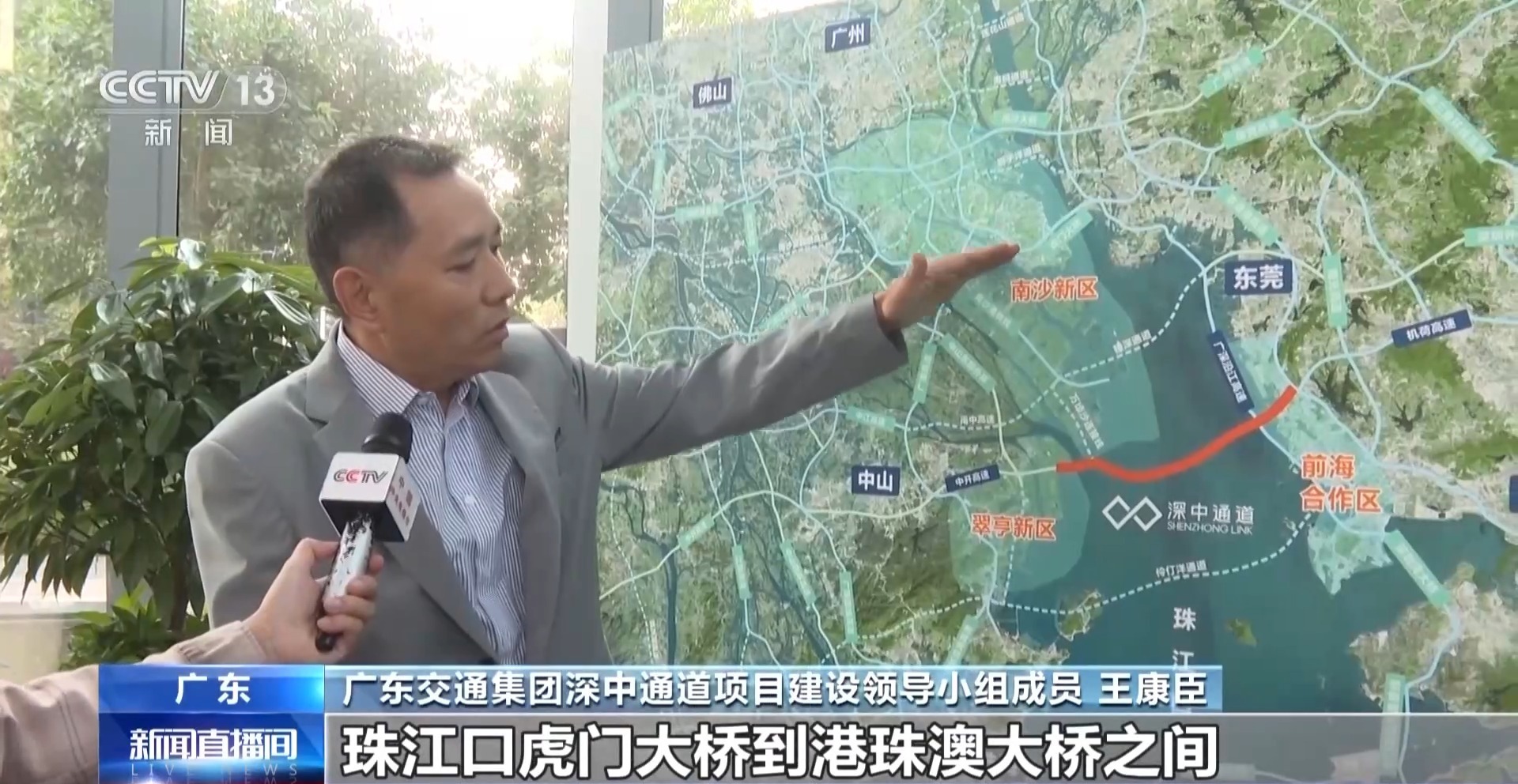 广东交通集团深中通道项目建设领导小组成员 王康臣:珠江口虎门大桥到港珠澳大桥之间60公里的范围之内,目前还没有一个通道,深中通道刚好弥补了这个空白,它的规划和建设将进一步完善粤港澳大湾区综合交通运输体系。