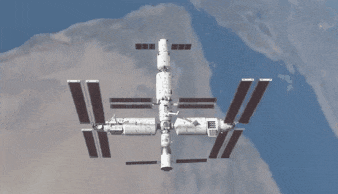 俯视角度下拍摄空间站组合体示意图