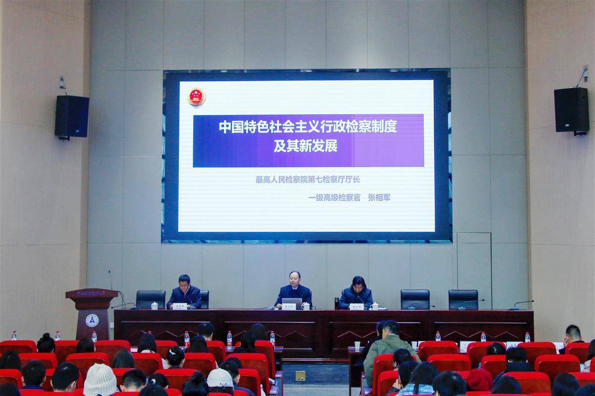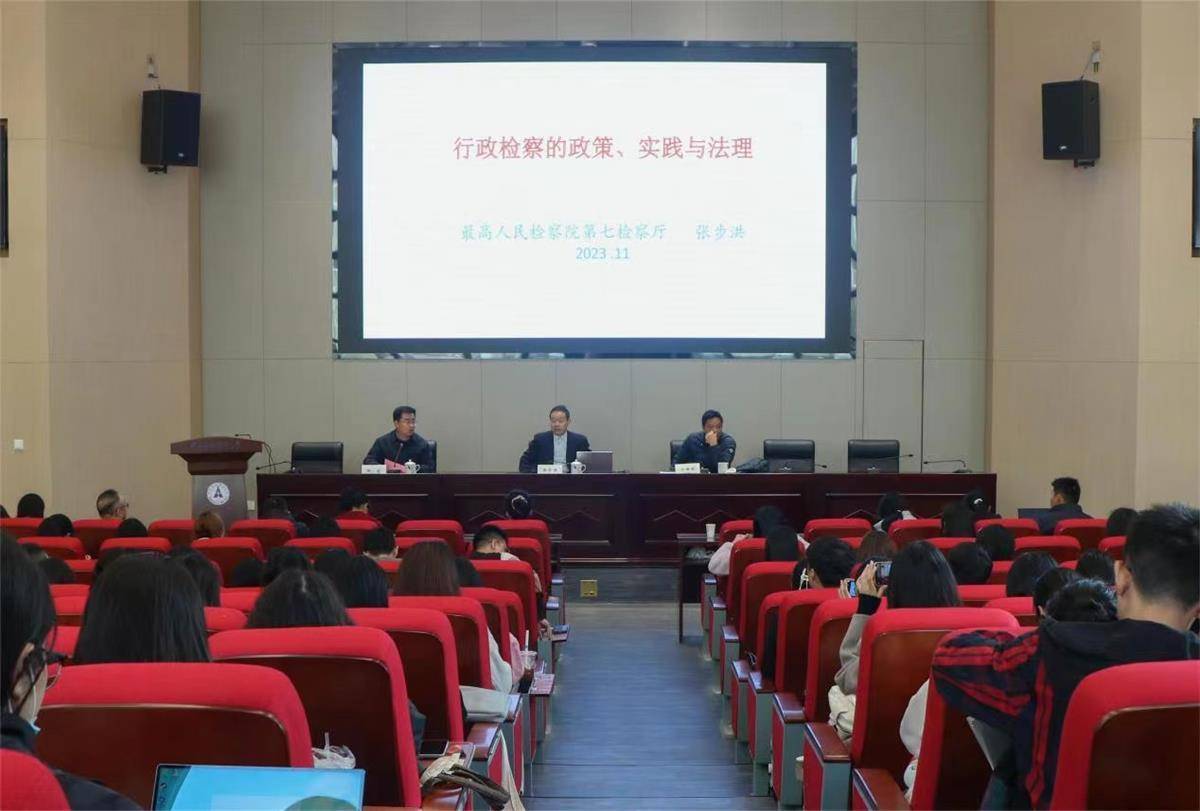 当日,最高人民检察院第七检察厅(行政检察厅)厅长、一级高级检察官张相军,副厅长、一级高级检察官张步洪先后围绕“中国特色行政检察制度及其新发展”“行政检察的政策·实践与法理”主题,为中南财经政法大学师生授课。