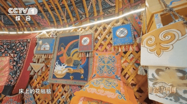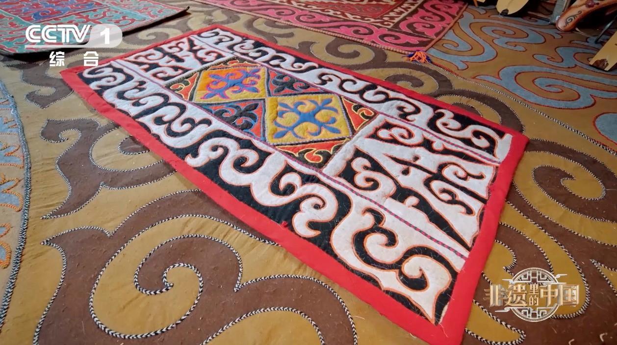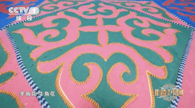 花毡不仅是哈萨克族人民的生活用品,也是嫁妆必备物品之一。节目中,哈萨克族花毡制作技艺自治区级代表性传承人丽娜·阿汗展示了自己出嫁时妈妈制作的花毡↓