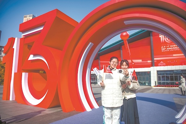 珞珈之山,东湖之水,山高水长,流风甚美。11月29日,被誉为“中国最美大学”之一的武汉大学,迎来了130周年校庆。当天,海内外校友、高校代表及社会各界嘉宾等齐聚一堂,回首兴学图强的峥嵘岁月,展望未来发展的美好蓝图。图为武汉大学学生在校庆活动现场合影。 新华社发