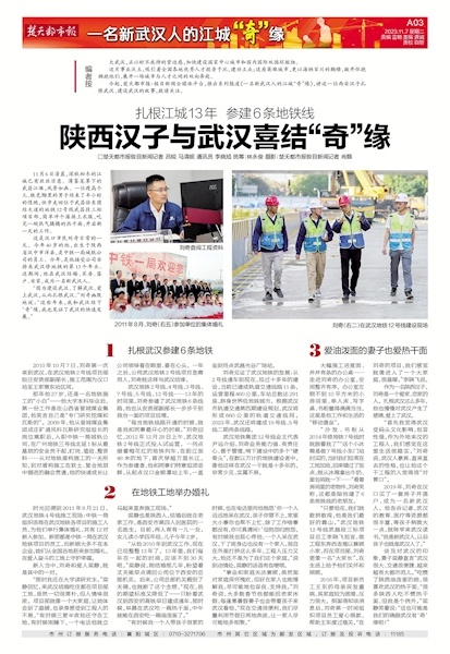 11月7日至10日,楚天都市报·极目新闻全媒体平台推出系列报道《一名新武汉人的江城“奇”缘》,讲述陕西汉子刘奇13年来扎根武汉,参建6条地铁,在建设过程中与武汉结下“奇”缘的故事。报道通过深入挖掘刘奇这一典型人物,从小切口反映出武汉持续优化人才生态,识才、爱才、敬才、用才,展开一场城市与人才的双向奔赴。同时,极目评论推出《开放热情的武汉,是每一位奋斗者的“梦工厂”》,为刘奇和以刘奇为代表的外地来汉“追梦人”点赞。