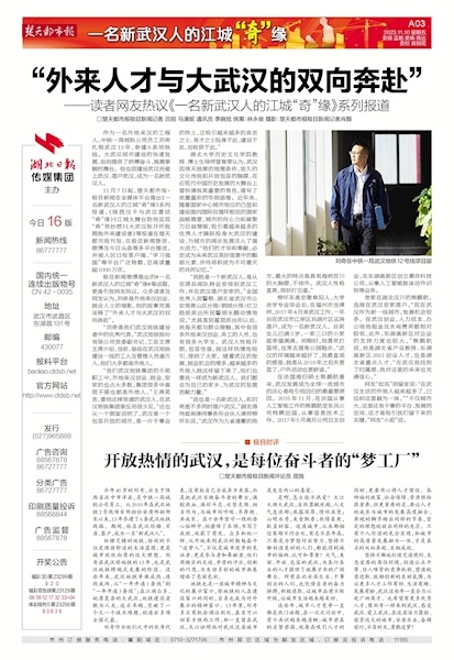武汉大学城市安全与社会管理研究中心副主任、特聘教授尚重生表示,城市发展与个人发展息息相关。武汉这座城市“天生丽质”,对人才的吸引也有着先天优势。新武汉人刘奇的系列报道意义很大,希望武汉能吸引、留住更多人才,人才也能在武汉实现个人梦想。
