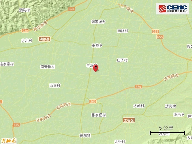 周边县城:震中距清徐县13公里、距太谷区14公里、距晋源区21公里、距祁县23公里、距小店区25公里,距晋中市31公里,距太原市33公里。