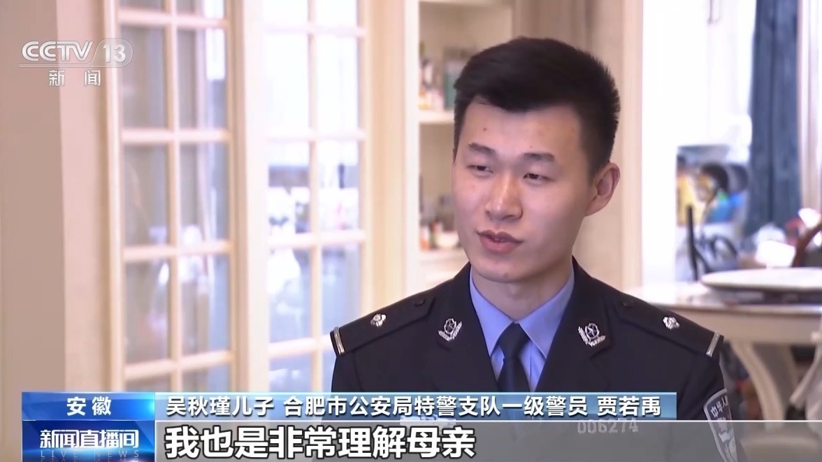 吴秋瑾儿子 合肥市公安局特警支队一级警员 贾若禹:我真正成为这个职业里面的一员之后,我也是非常理解母亲,包括母亲也会理解我。