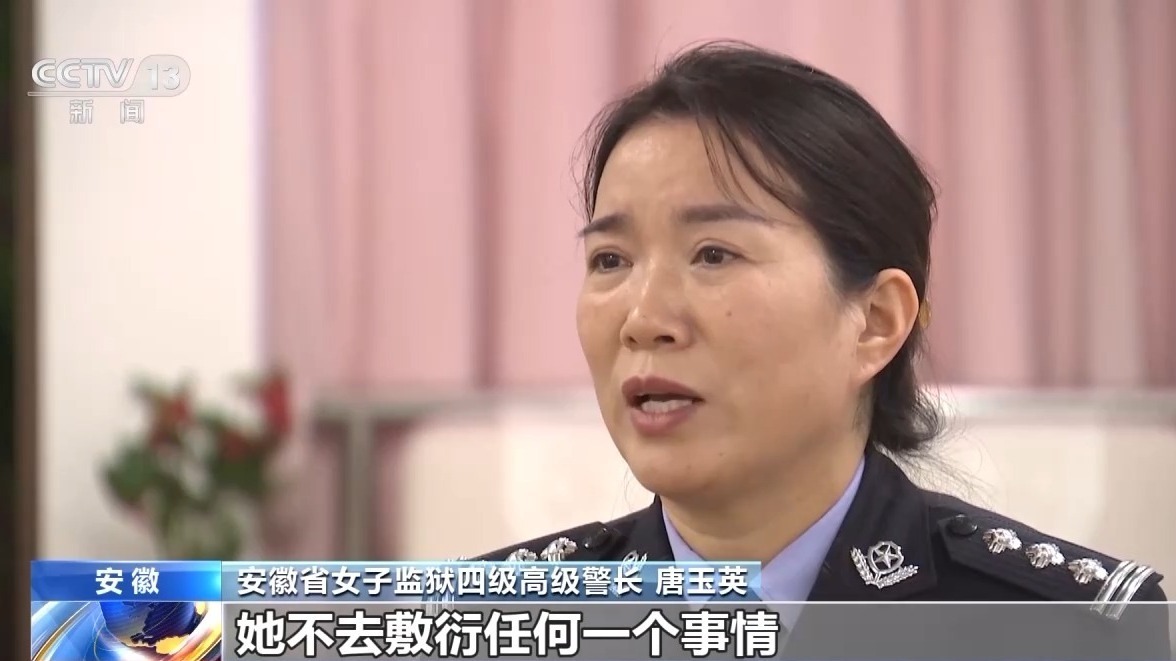 安徽省女子监狱四级高级警长 唐玉英:她从来就没有讲,我现在我身体不好,然后你有什么事情你就不要给我汇报了。基本上跟她讲了以后,有时候给她发邮件,有时候给她纸质报过来,她还会去思考,然后给我们提出一些意见。很认真地对待,她不去敷衍任何一个事情。