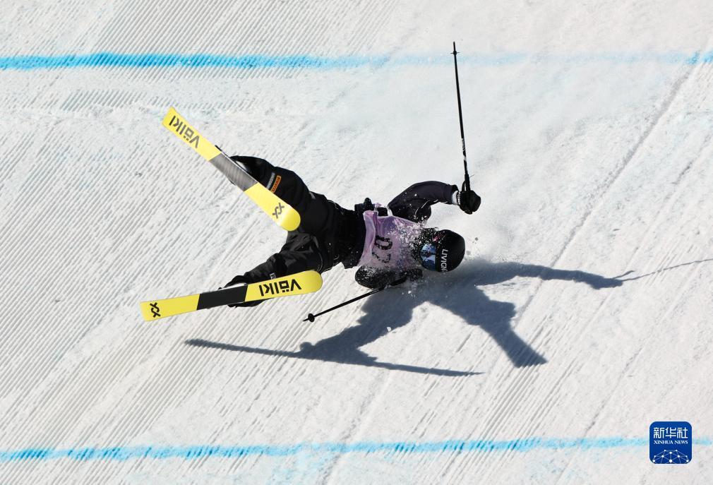 11月30日,意大利选手弗洛拉·塔巴内利在自由式滑雪大跳台世界杯女子组预赛中摔倒,她以151.00分的成绩晋级决赛。新华社记者 张晨霖 摄