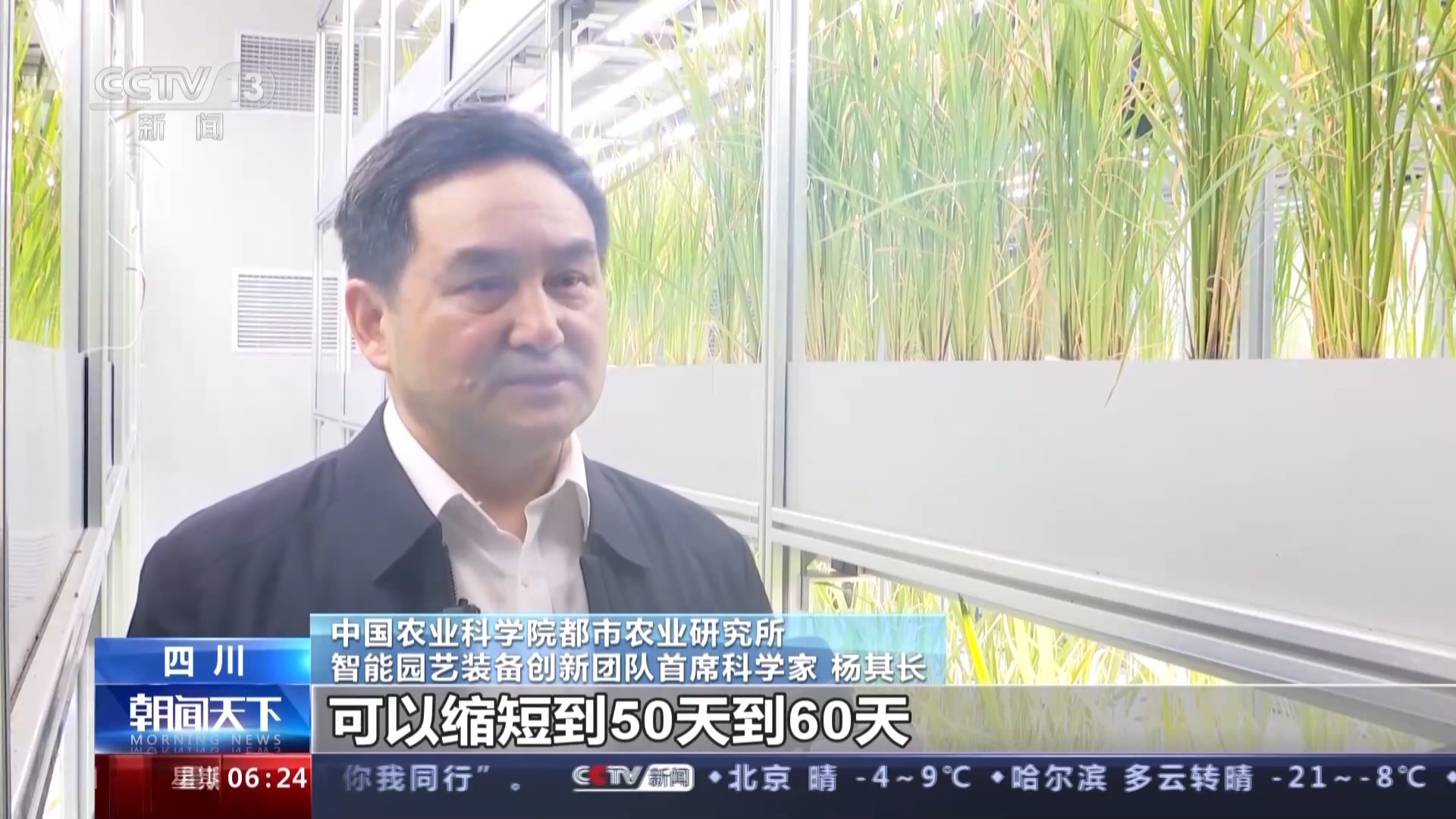 中国农业科学院都市农业研究所智能园艺装备创新团队首席科学家 杨其长:作物的生育期由原来的120天可以缩短到50天到60天,育种效率可以大幅度提升。