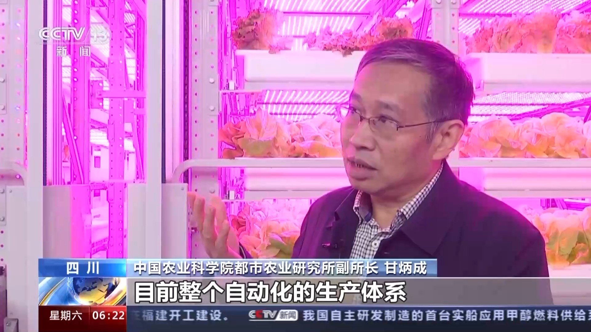 中国农业科学院都市农业研究所副所长 甘炳成:目前整个自动化的生产体系,应该是全世界领先的水平。我们目前设施单体生产的层数也是世界上最高的。