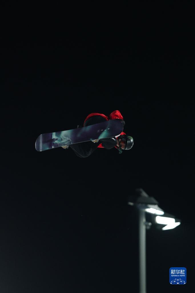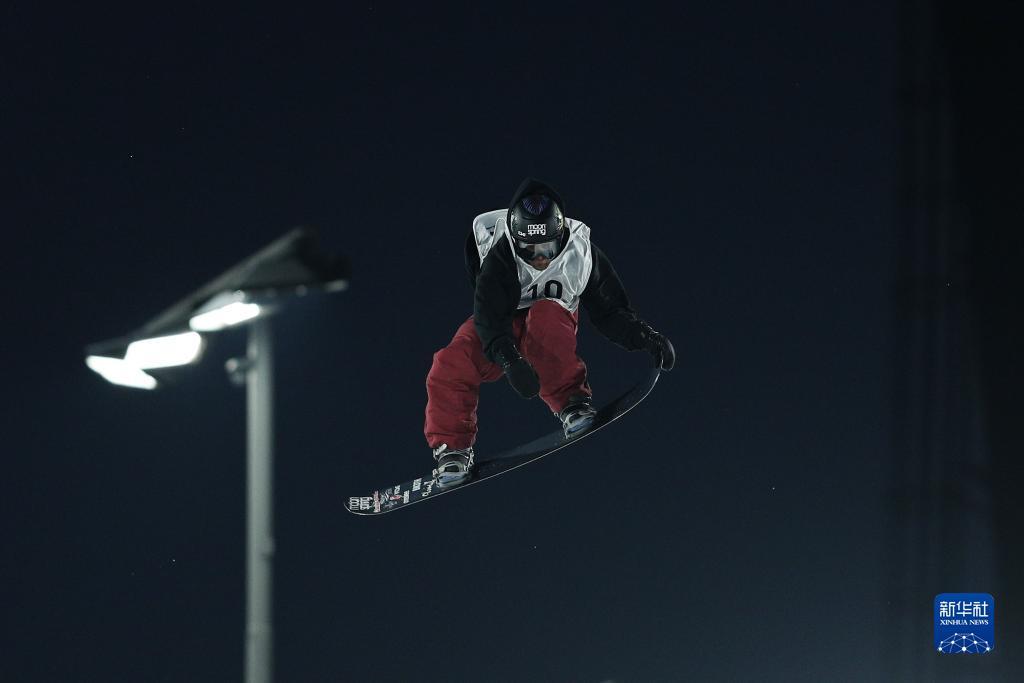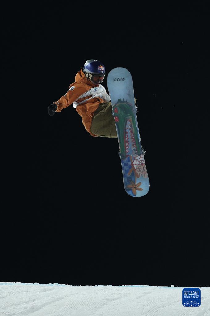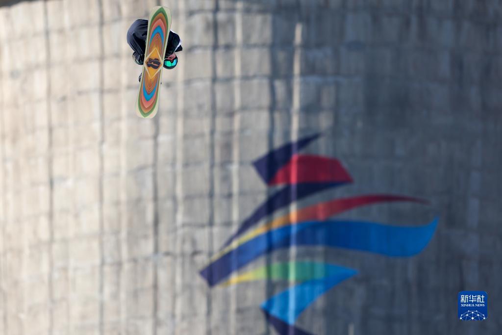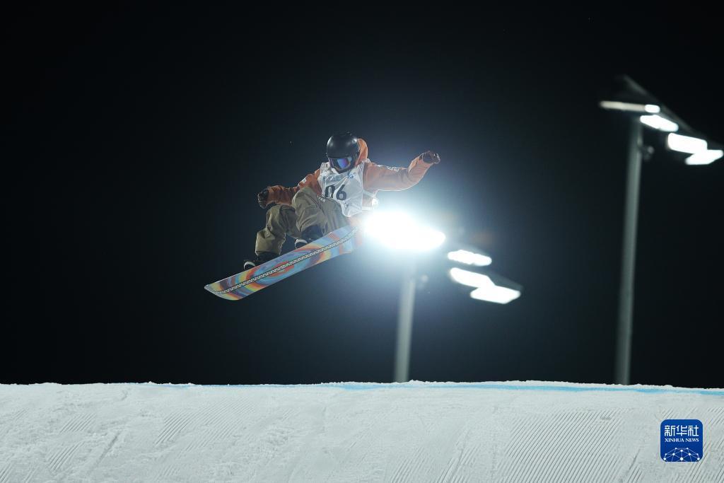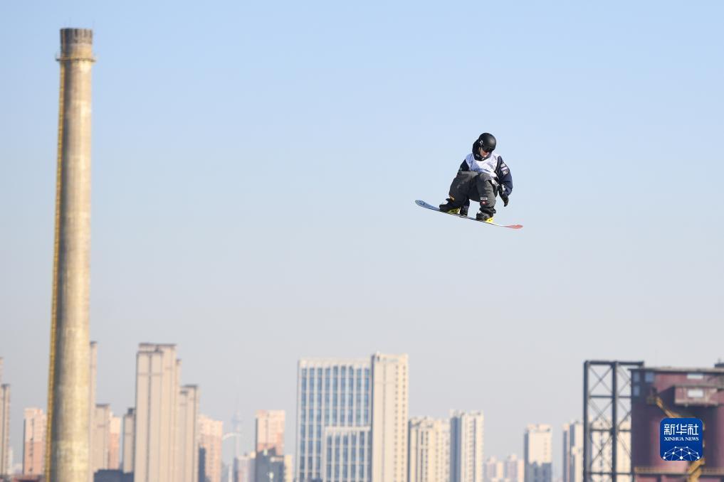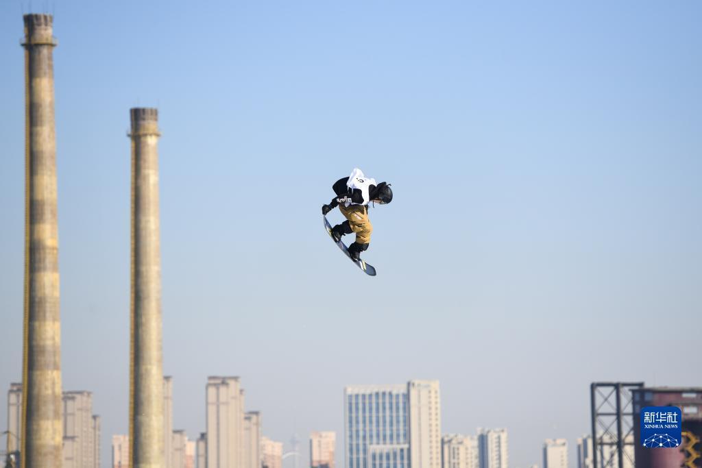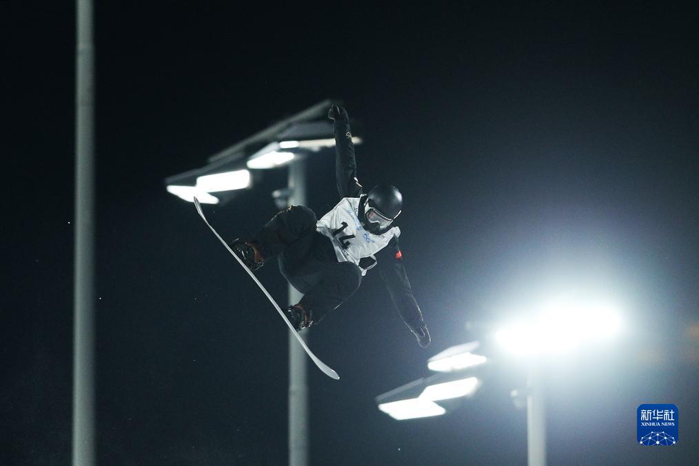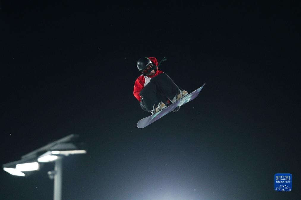 当日,2023-2024赛季国际雪联单板及自由式滑雪大跳台世界杯单板滑雪大跳台男子组预赛在北京首钢滑雪大跳台举行。