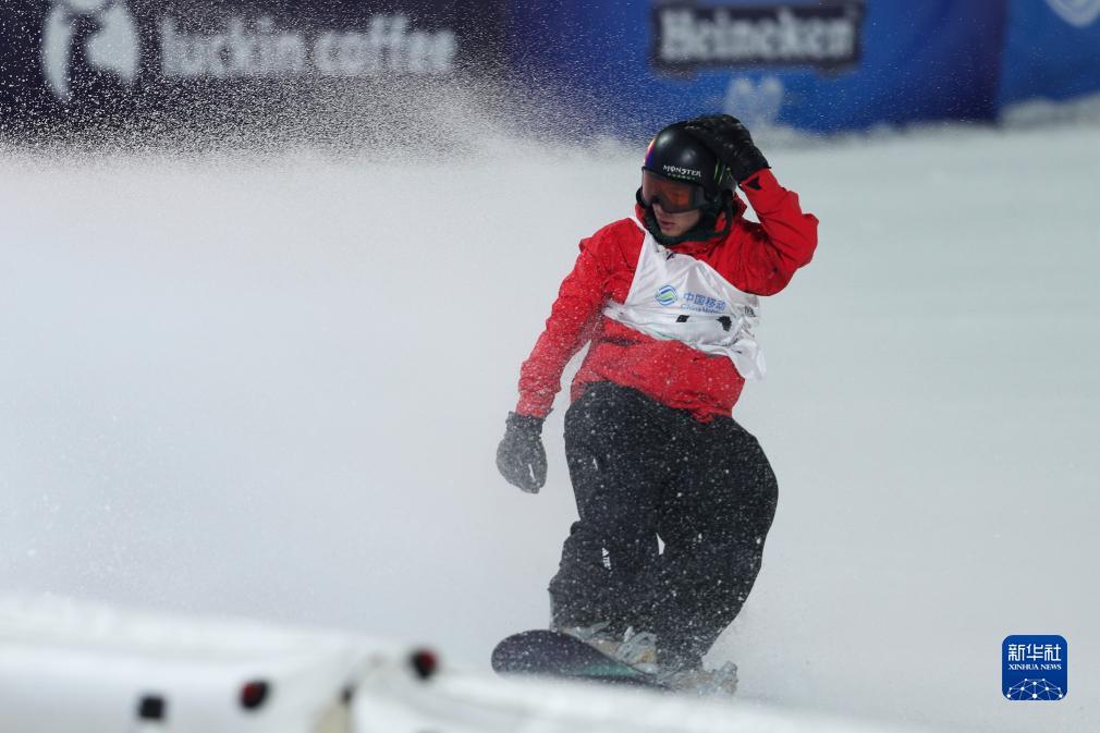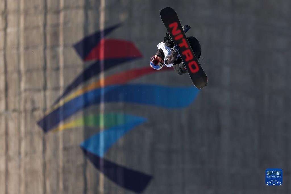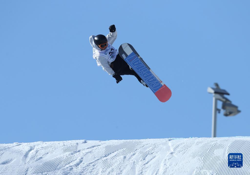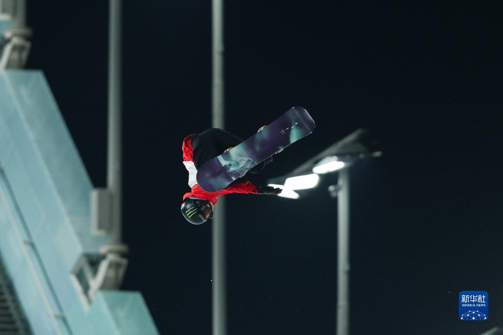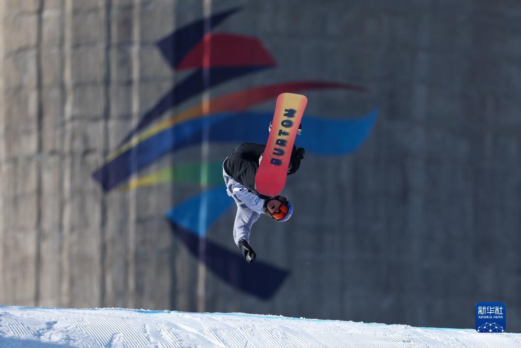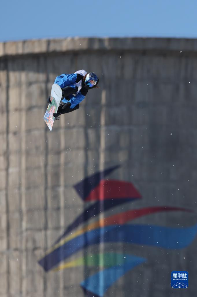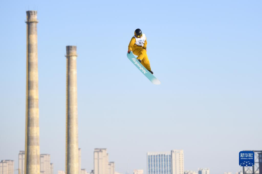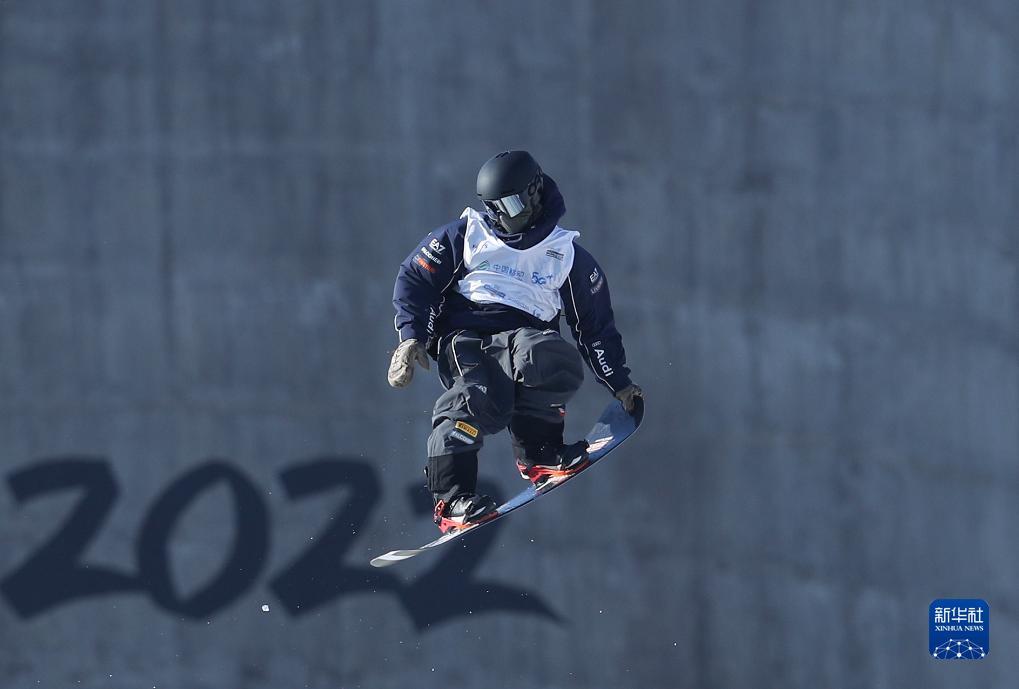 当日,2023-2024赛季国际雪联单板及自由式滑雪大跳台世界杯单板滑雪大跳台男子组预赛在北京首钢滑雪大跳台举行。