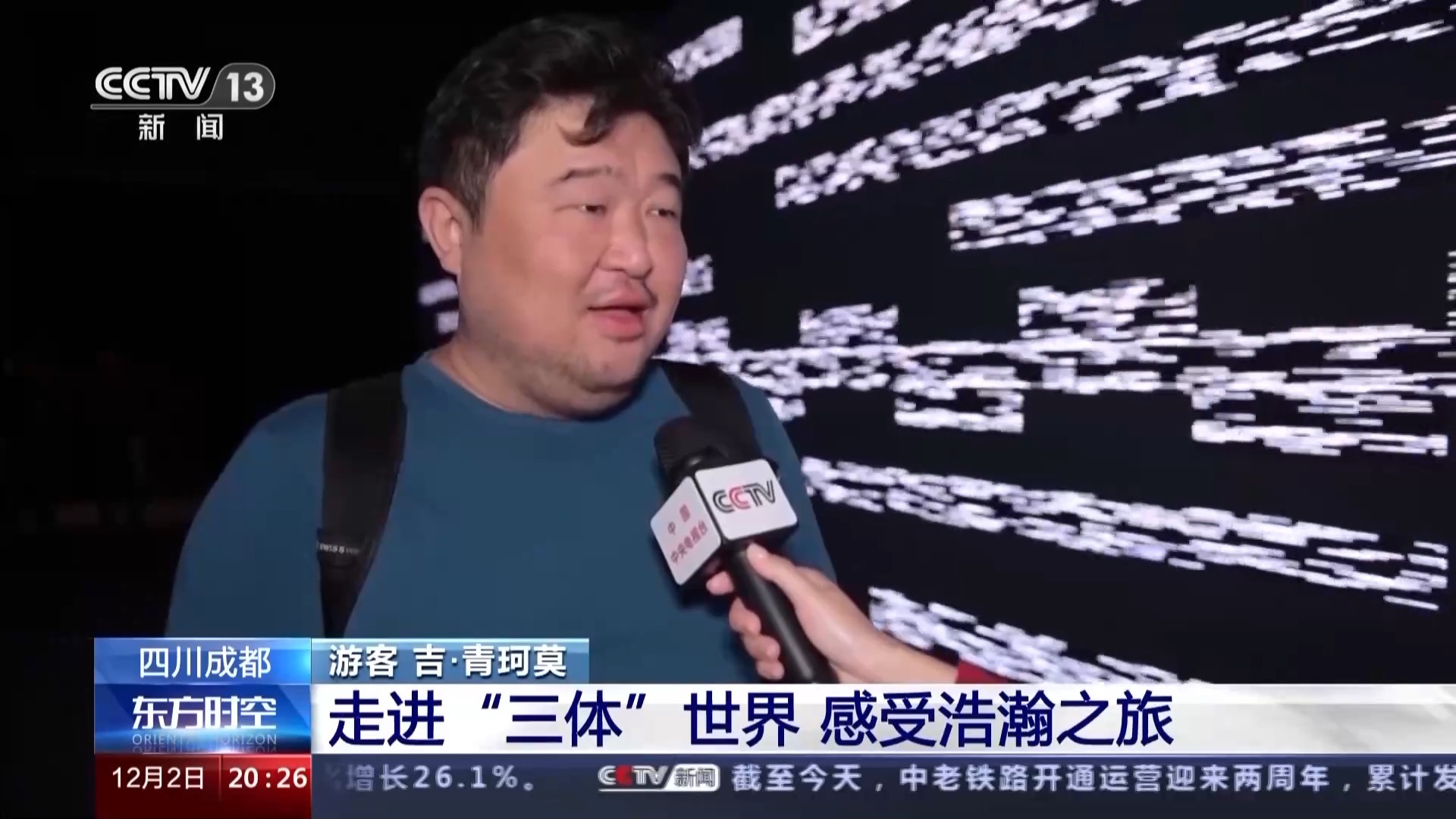 总台记者 黄鹂:《三体》这部小说相信很多人都看过,这部小说在第73届世界科幻大会上获得了雨果奖最佳长篇故事奖。走进这扇大门,我们将开启今天的三体之旅。
