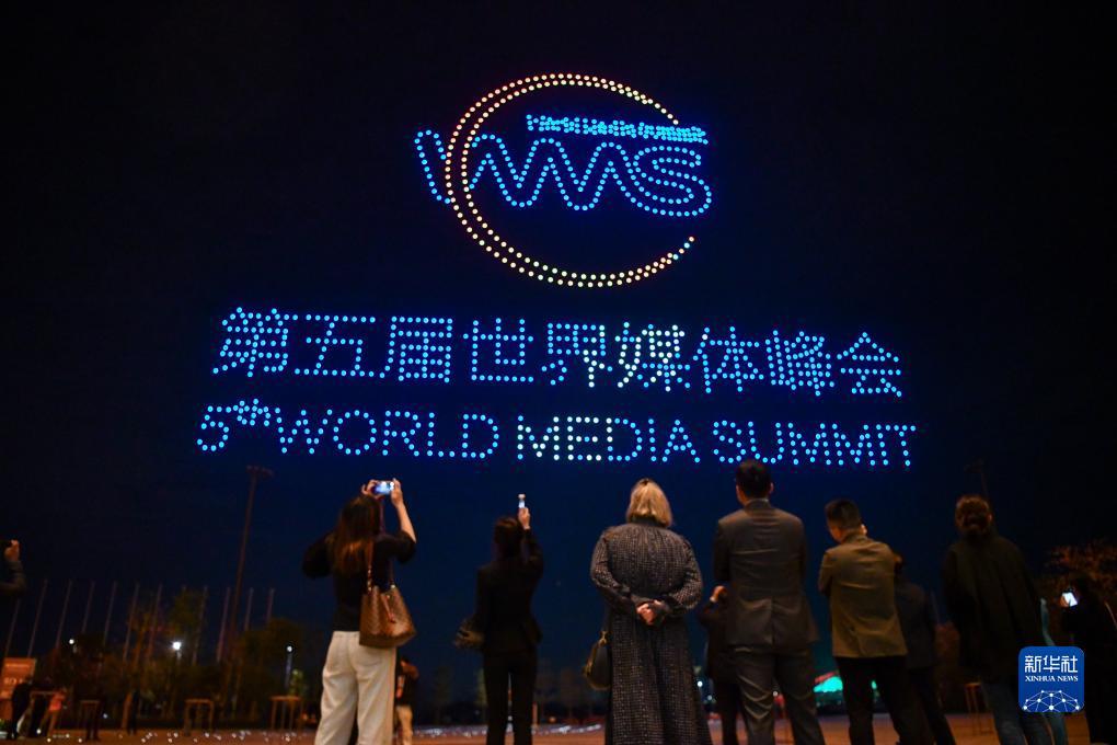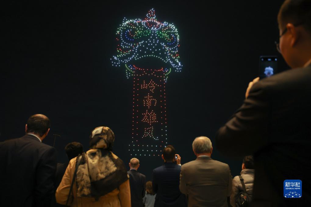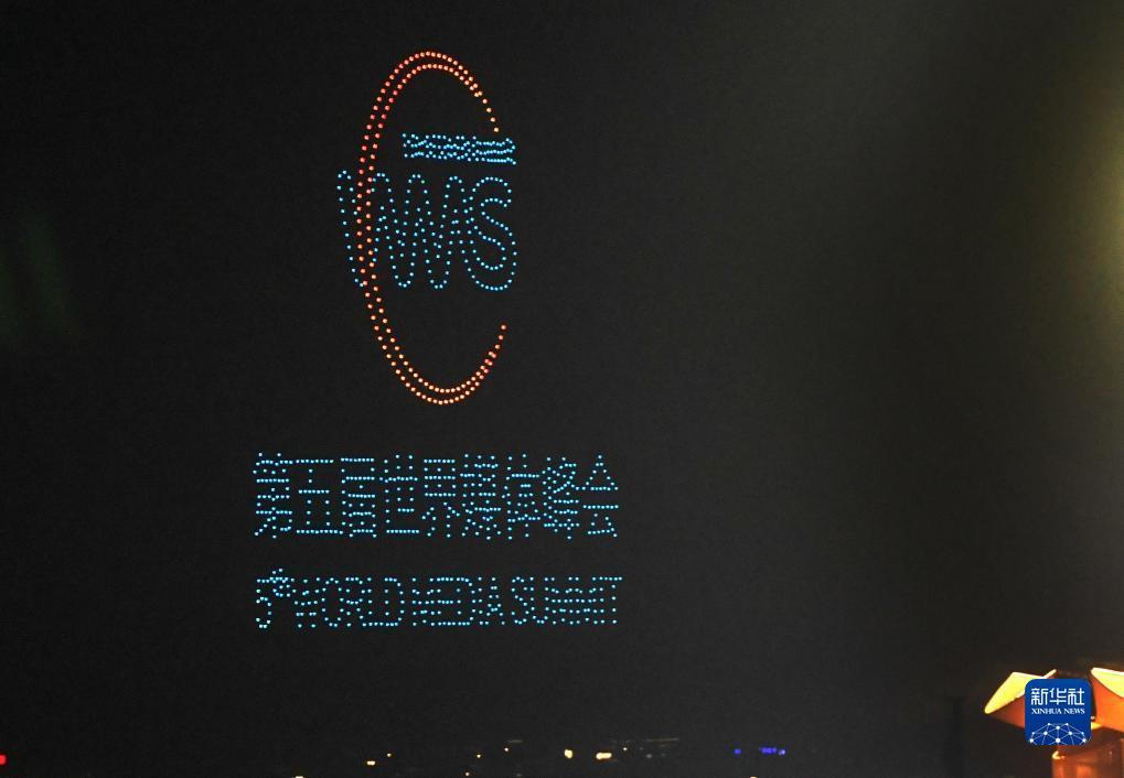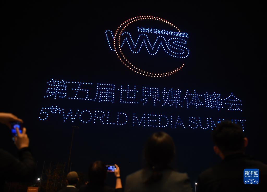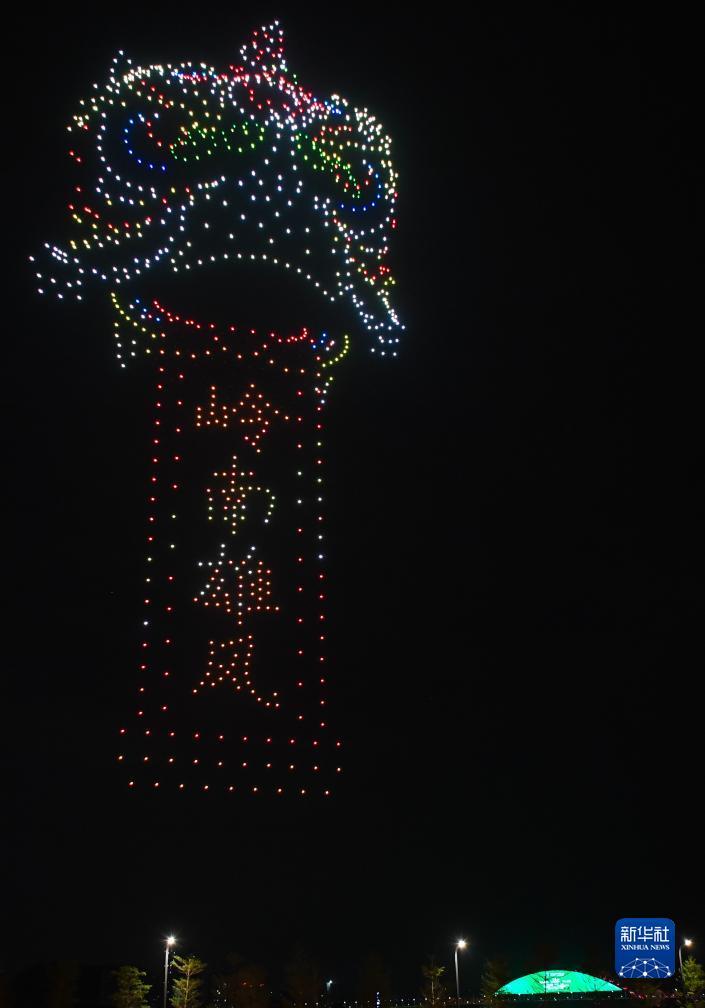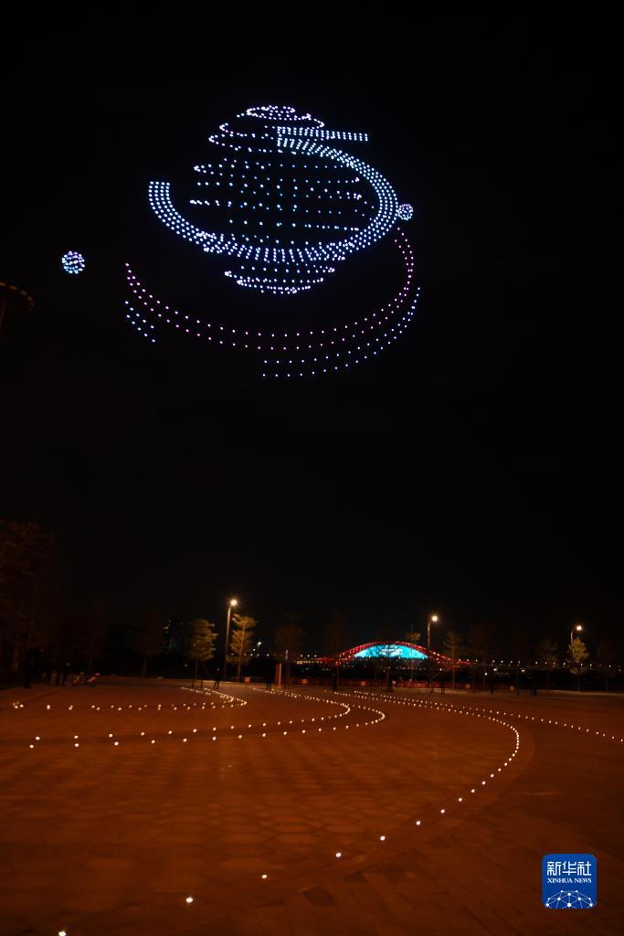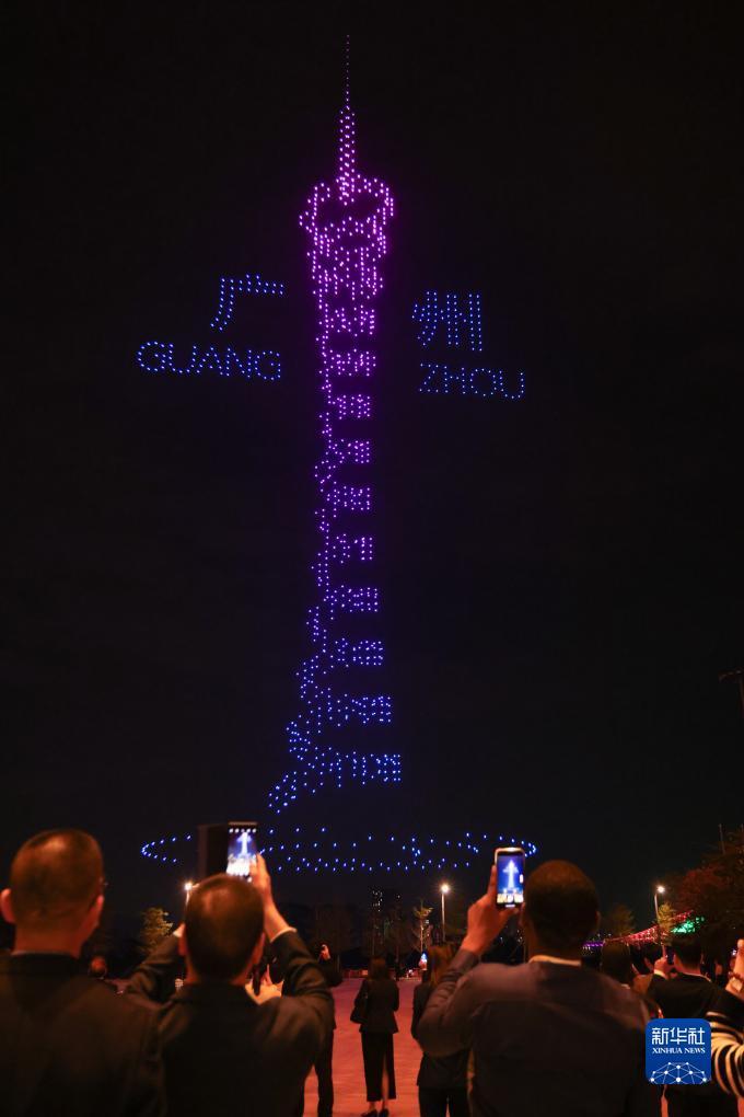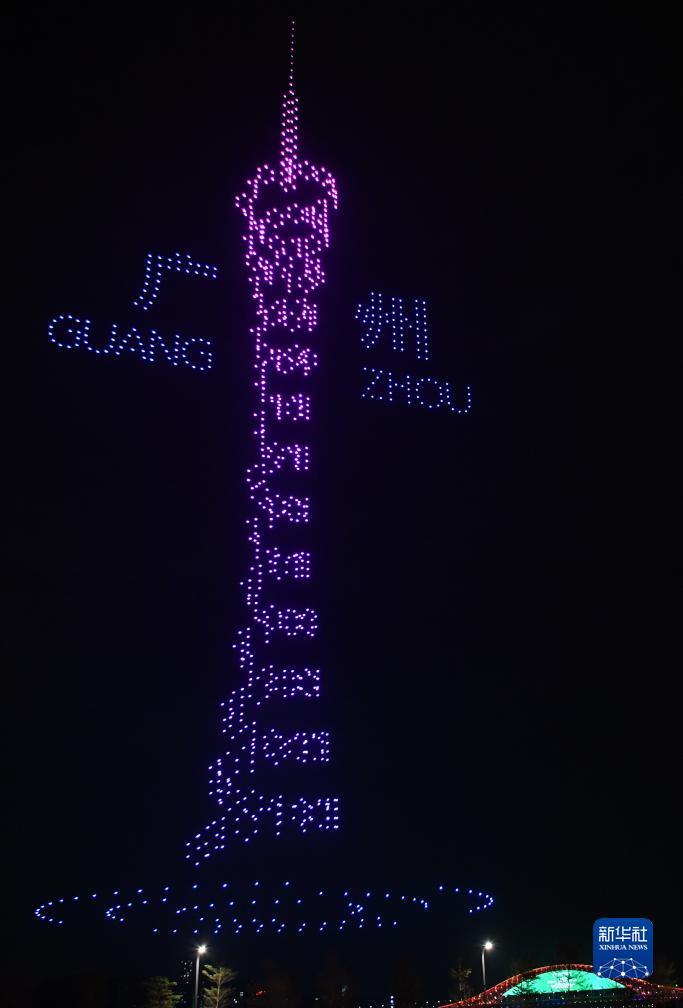 12月2日,广州南沙举行无人机表演迎接世界媒体峰会。